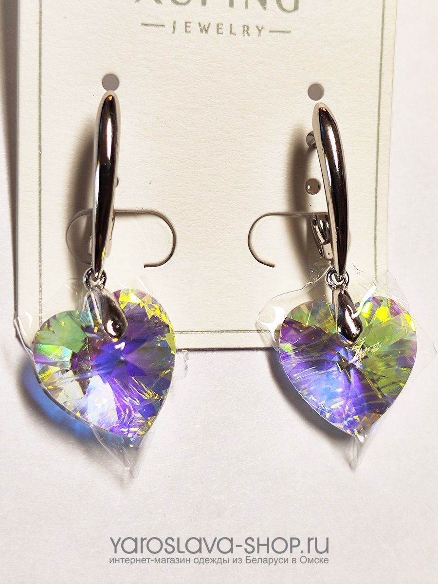Женские серьги с кристаллом в виде сердца