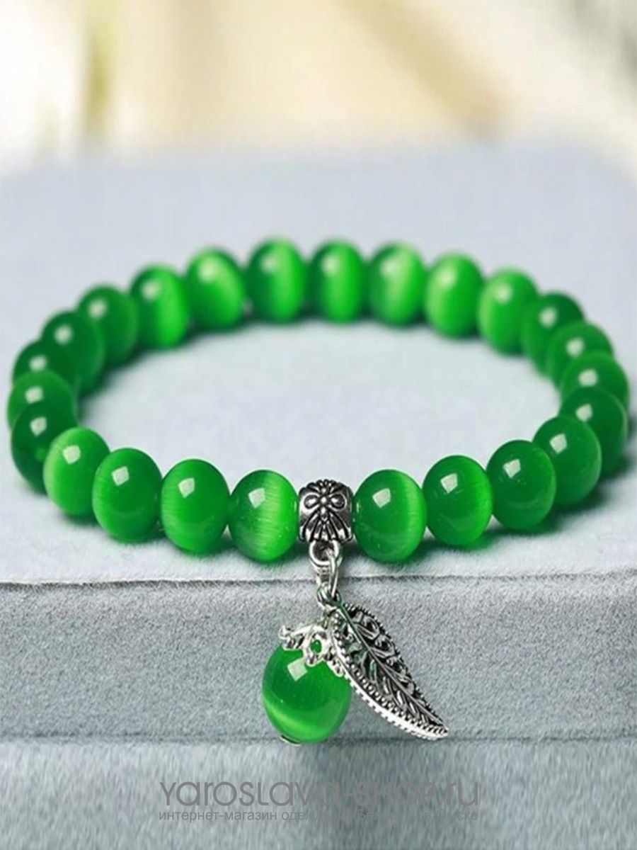 Браслет из камня кошачий глаз зеленого цвета