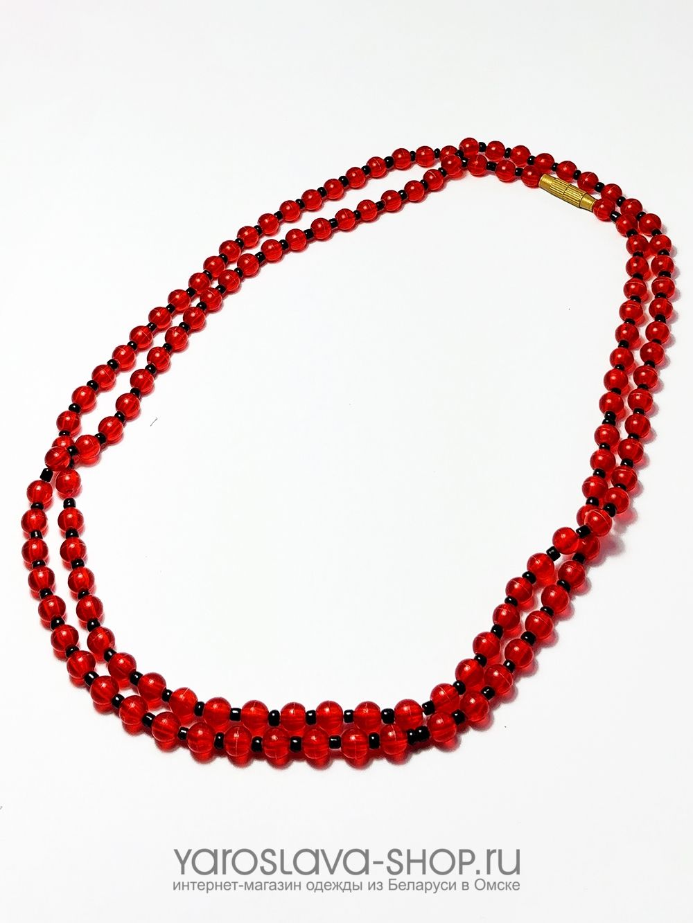 Бусы красные с чёрным бисером