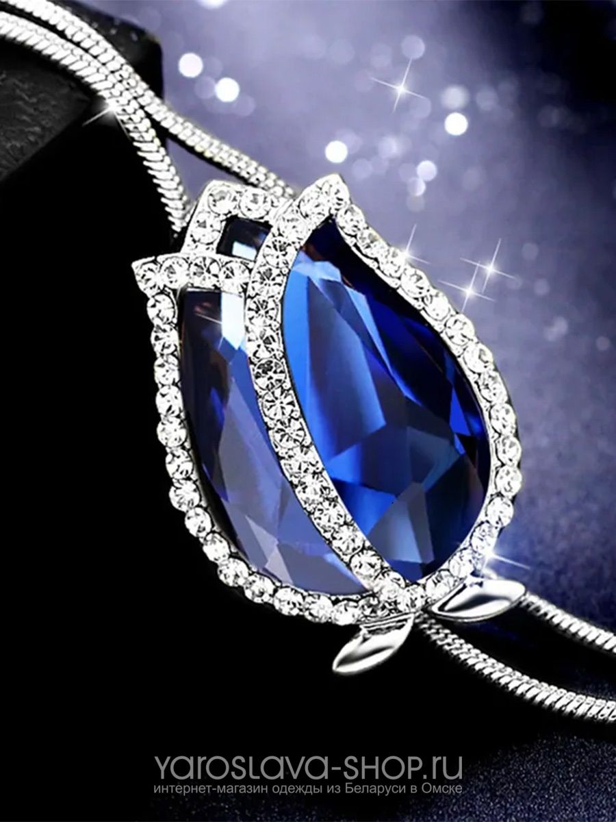 Подвеска с кулоном в виде цветка с синим камнем