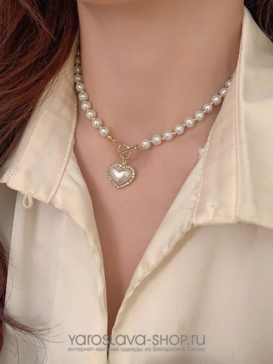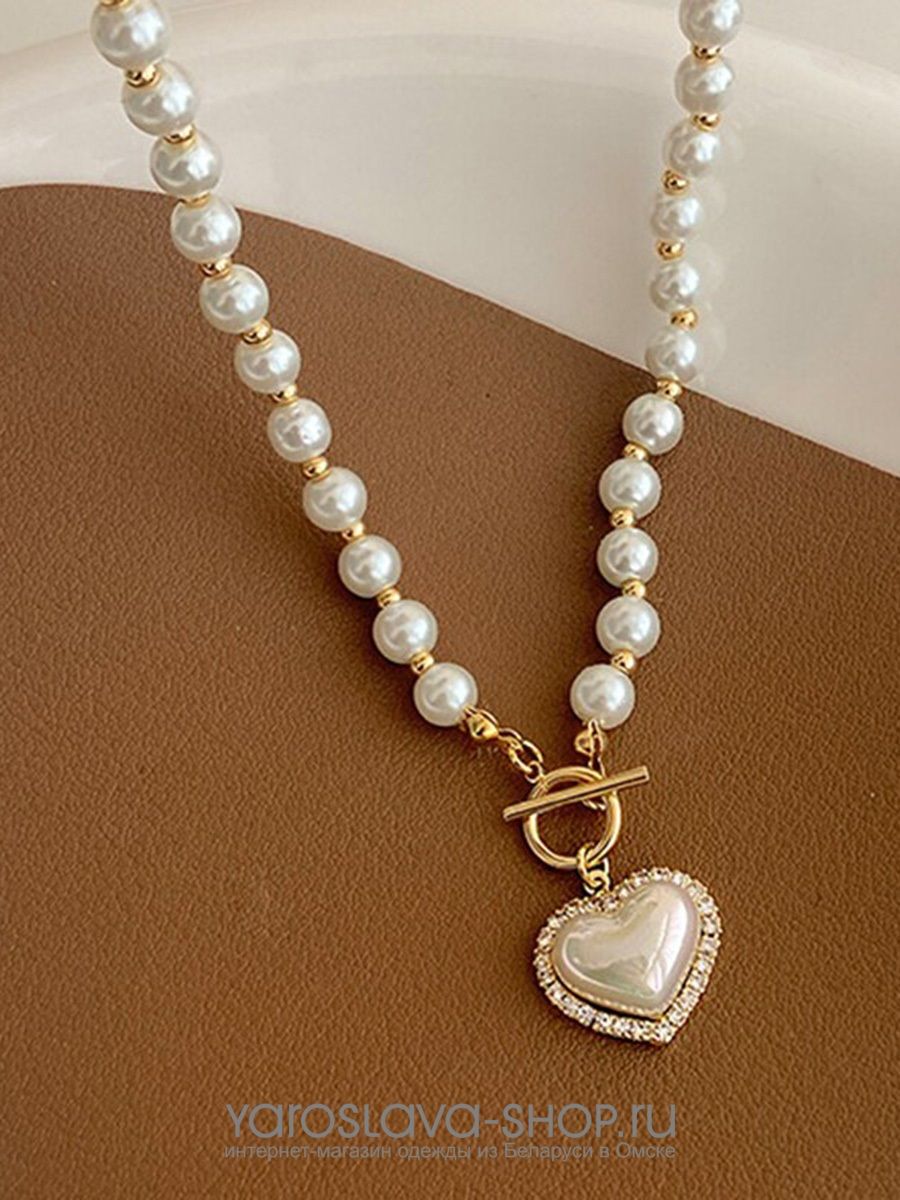 Колье из жемчуга с подвесом сердце.