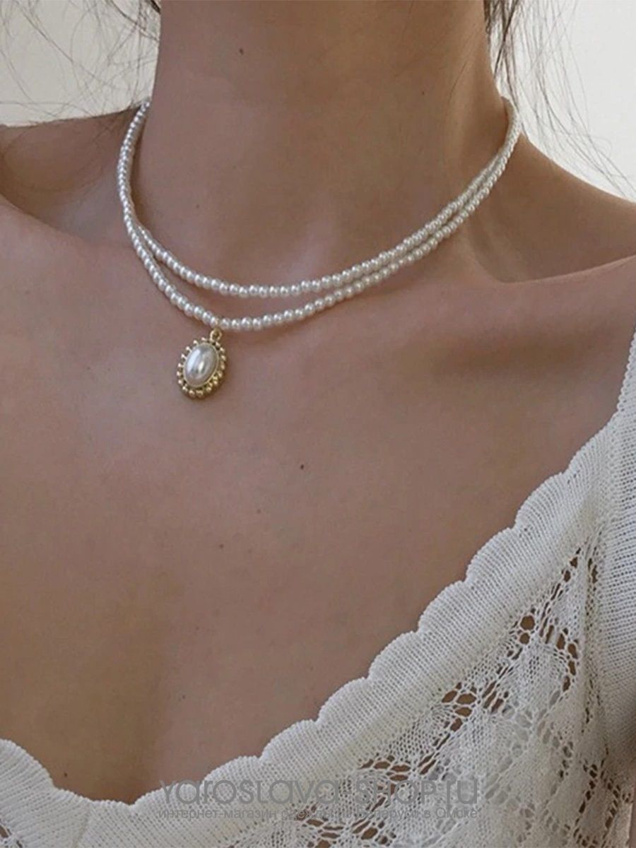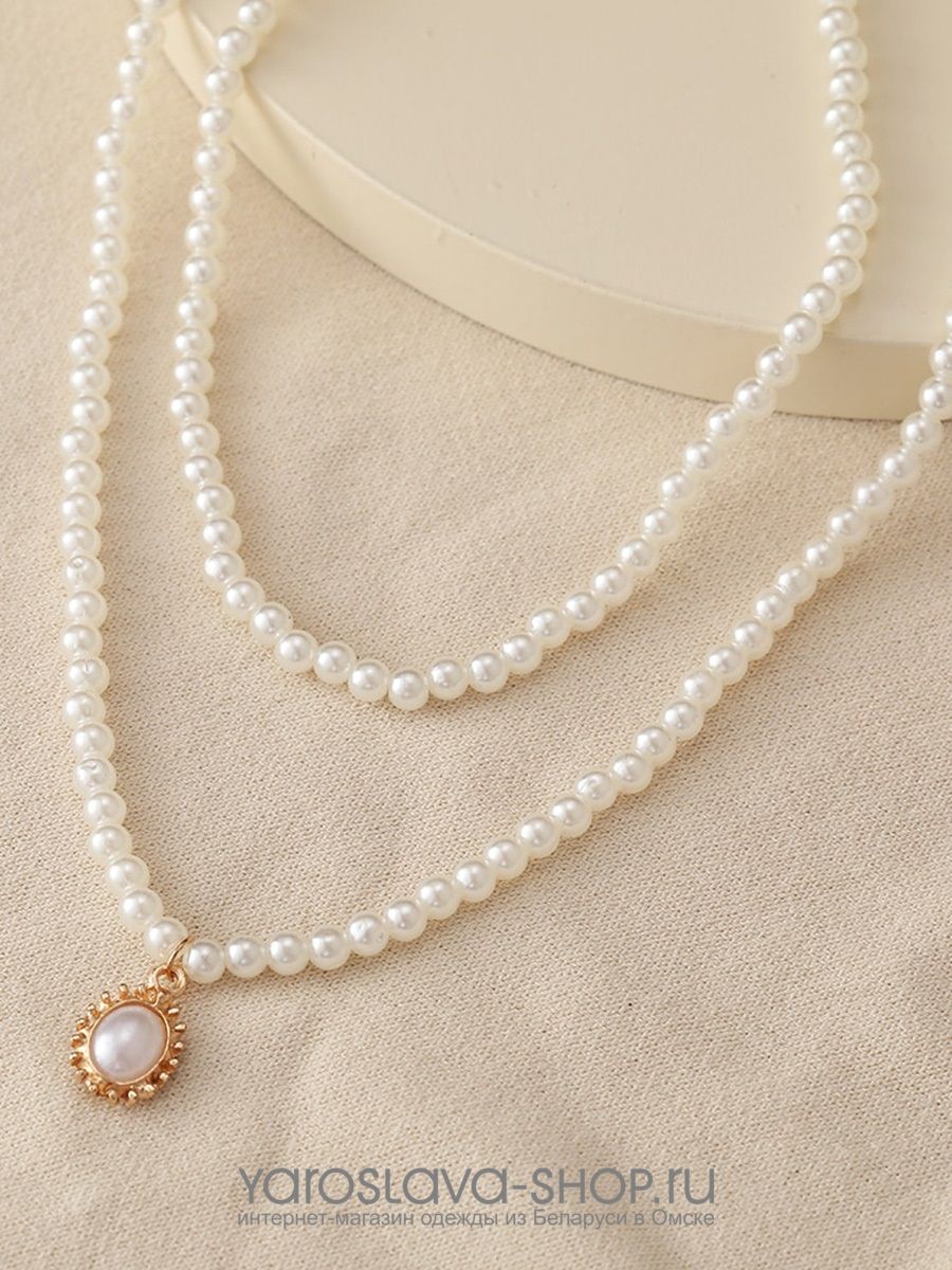 Колье жемчужное в две нити с подвеской