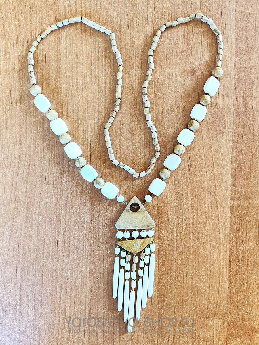 Типбусы и кольеКаменьдеревоОттенокбежевыйРазмер75 смЗастежканет
