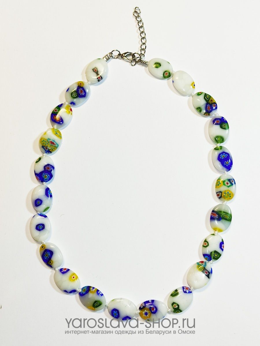 Типбусы и кольеКаменьмуранское стеклоОттенокбелыйРазмер42 смЗастежкакарабинМеталл (покрытие)хром
