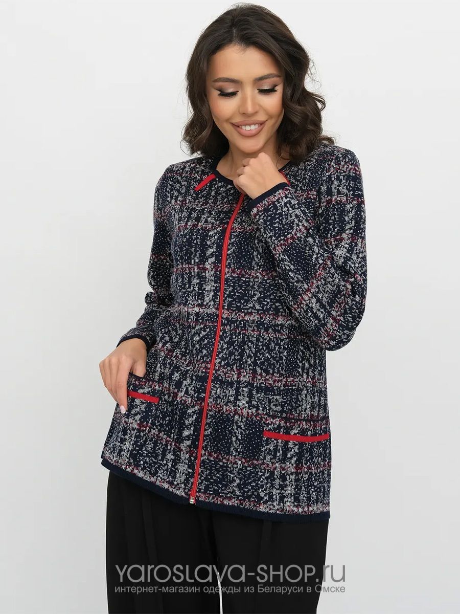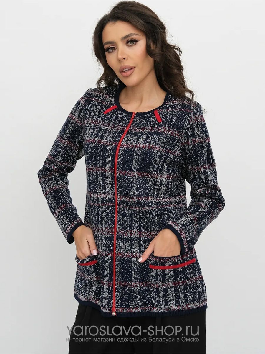 Жакет полуприлегающего силуэта в красно-синем цвете