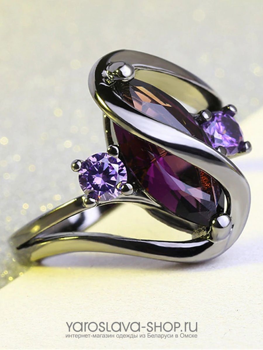 Кольцо с фиолетовым цирконом и двумя розовыми кристаллами
