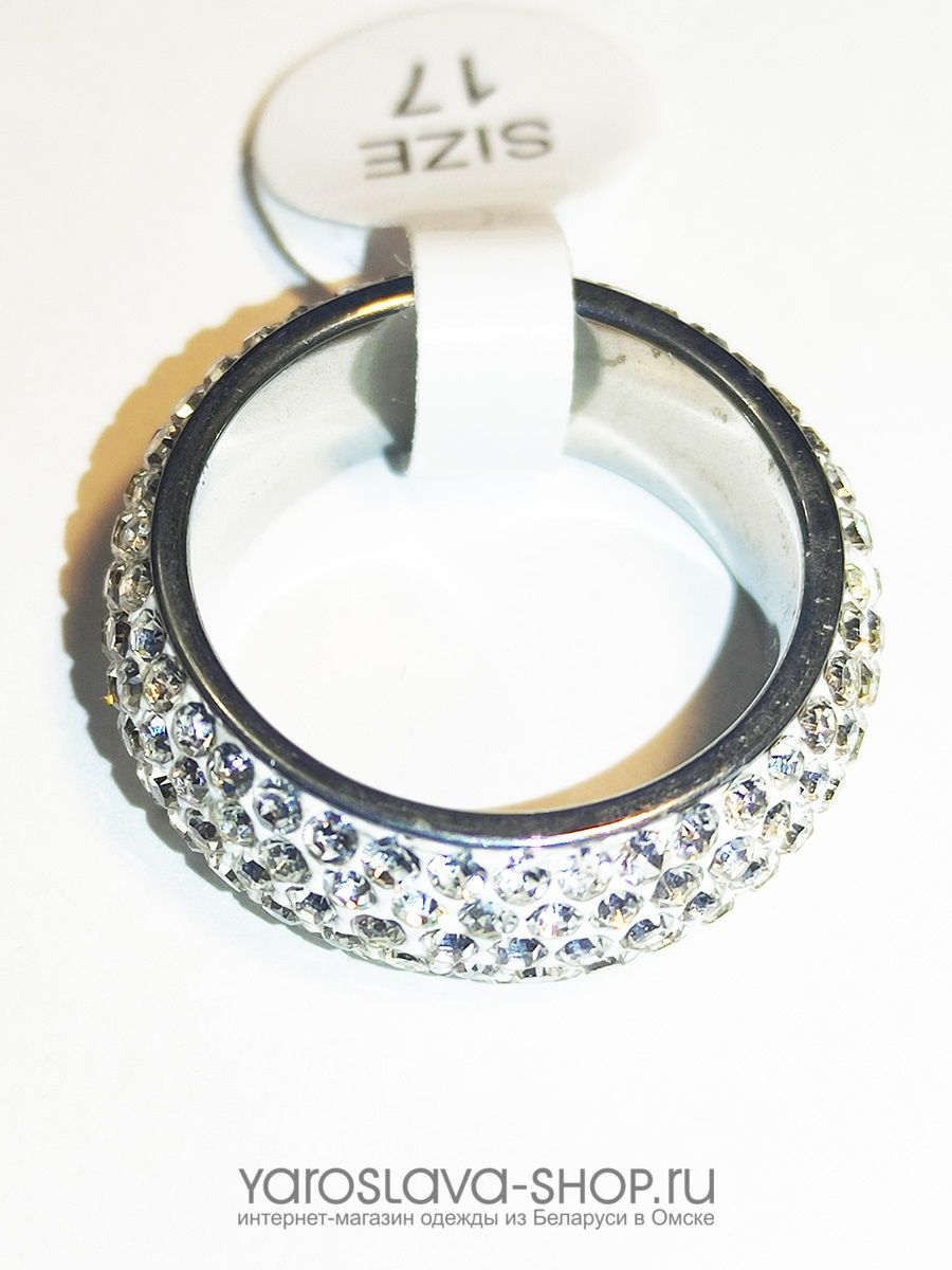 Кольцо объемное, инкрустация белыми стразами