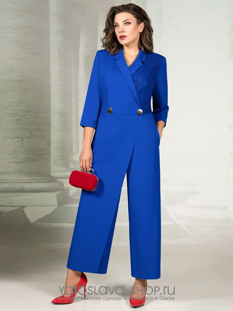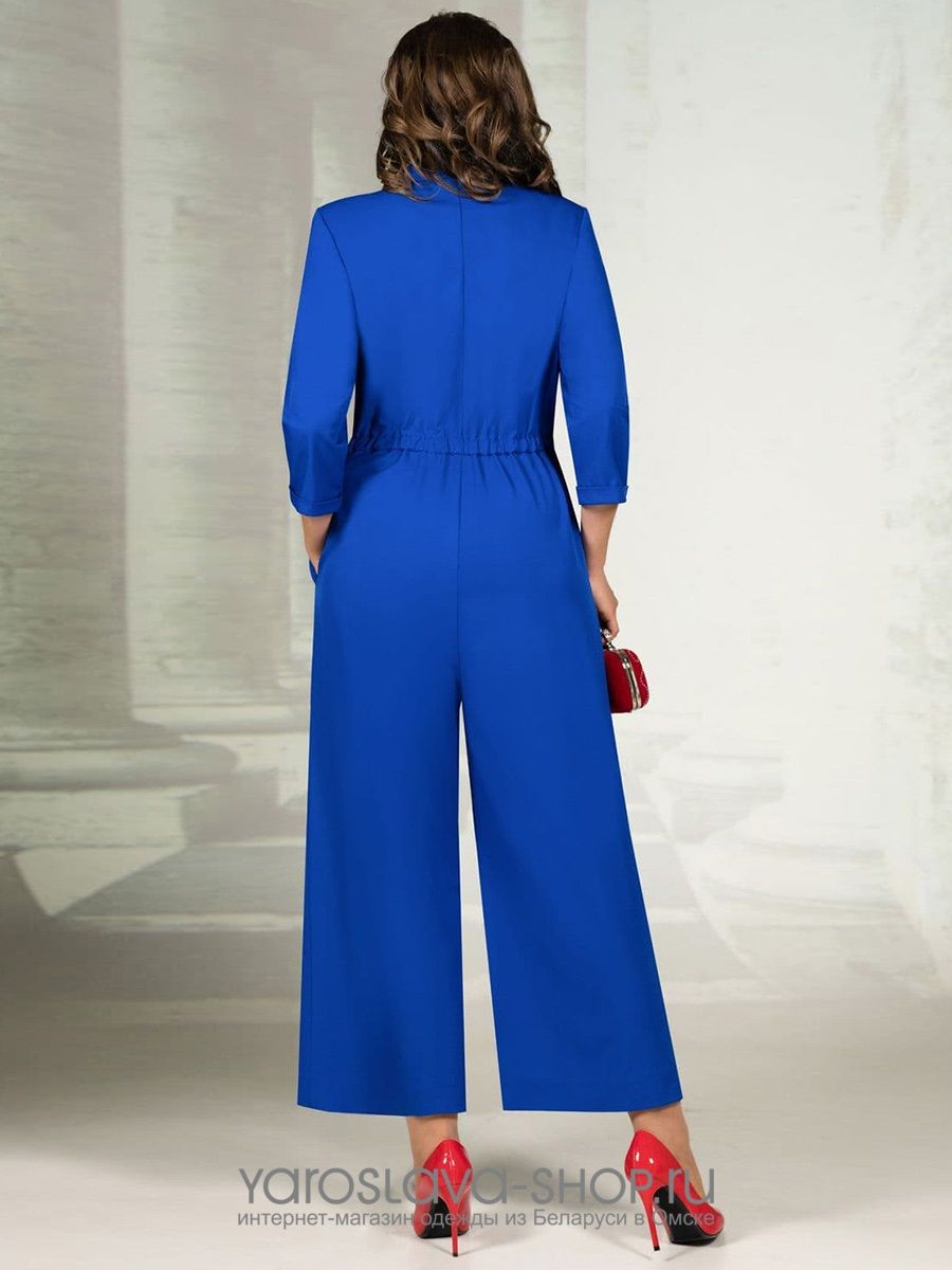 Нарядный комбинезон из костюмно-плательной ткани василькового цвета