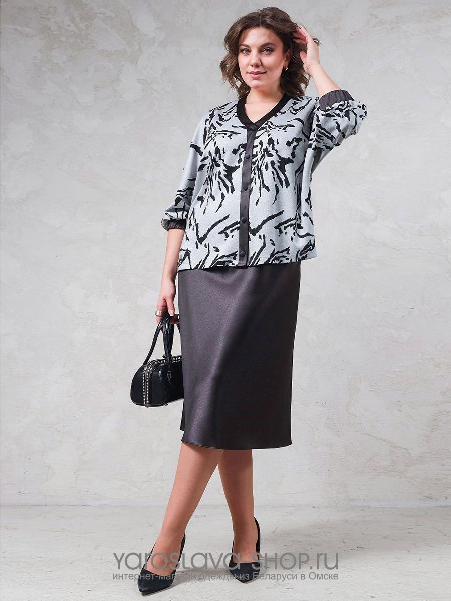 Размер56ОттеноксерыйФасонКостюм с юбкойСтильделовойУзорорнаментРукавдлинныйПроизводствоРеспублика Беларусь