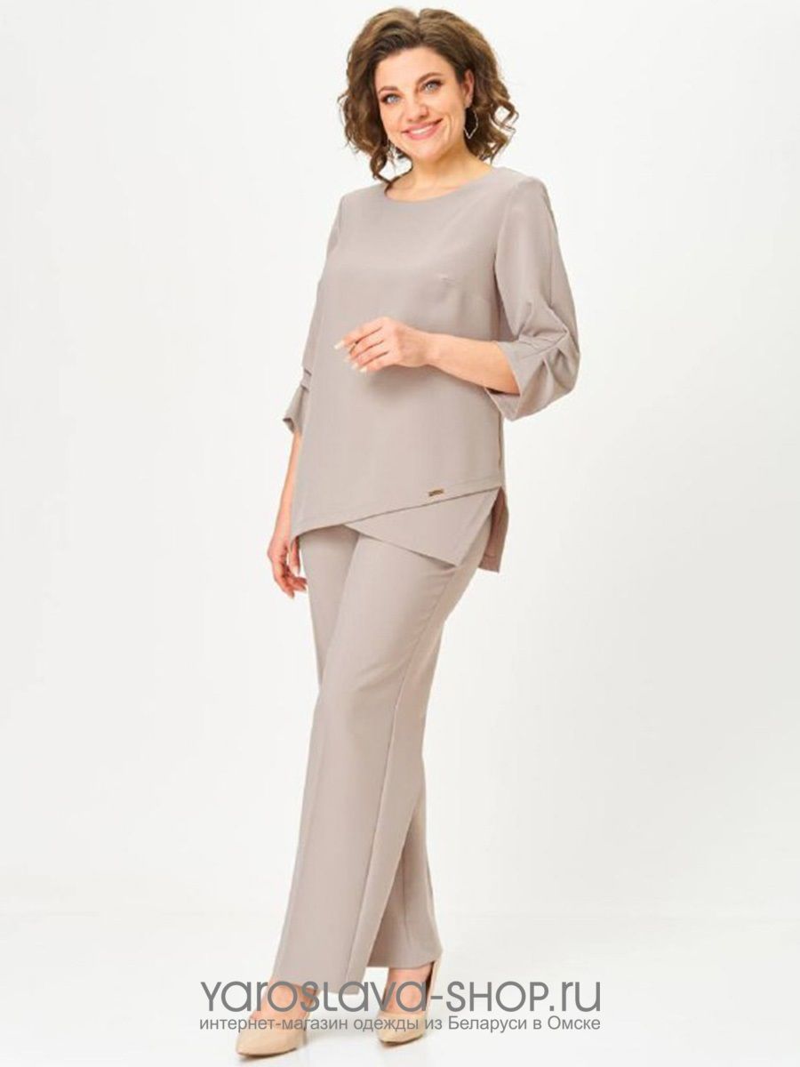 Костюм женский, 2-х предметный брюки и блузка в бежевом цвете