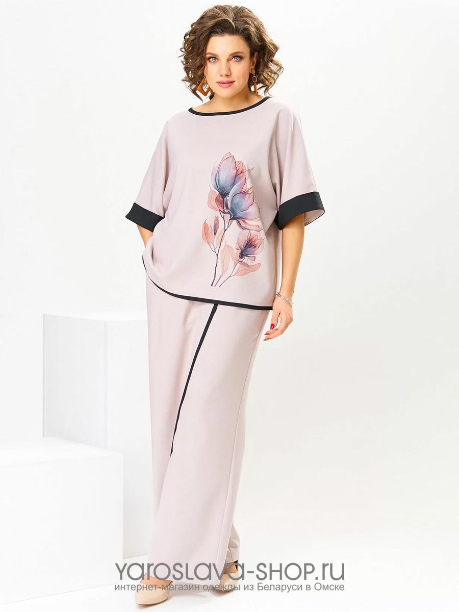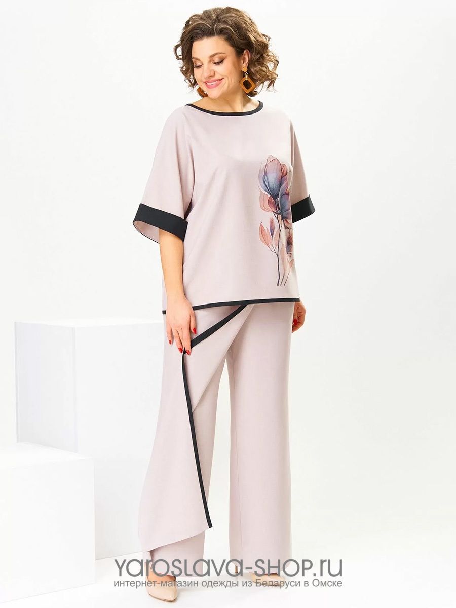 Пудровый брючный комплект с принтом "цветок"