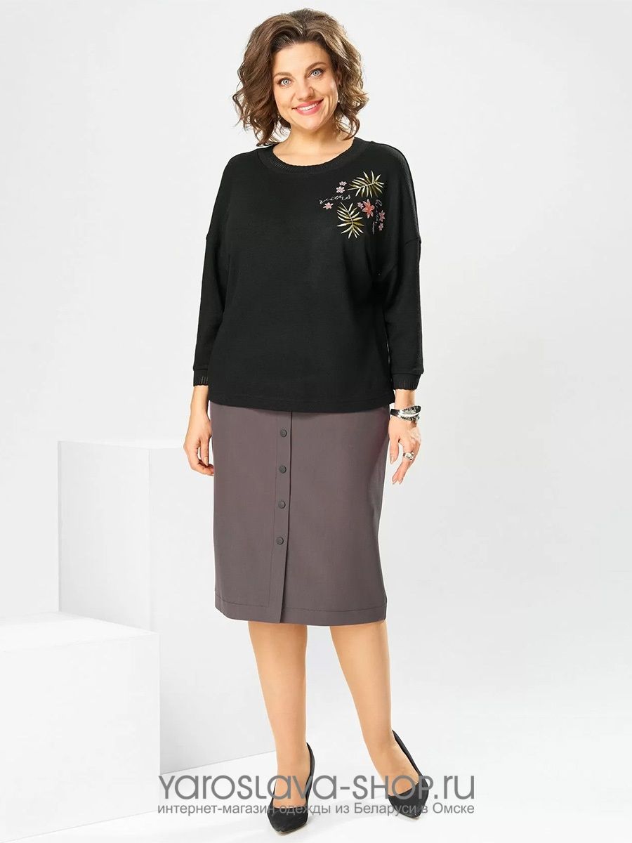 Женский 2-х предметный костюм, состоящий из черного джемпера и юбки серого цвета