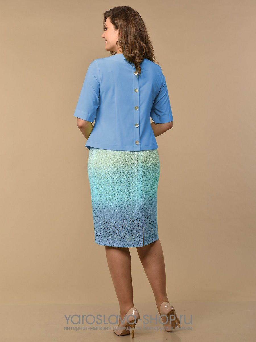 Костюм 2-ка голубого оттенка: юбка шитье хлопок, прилегающая блуза