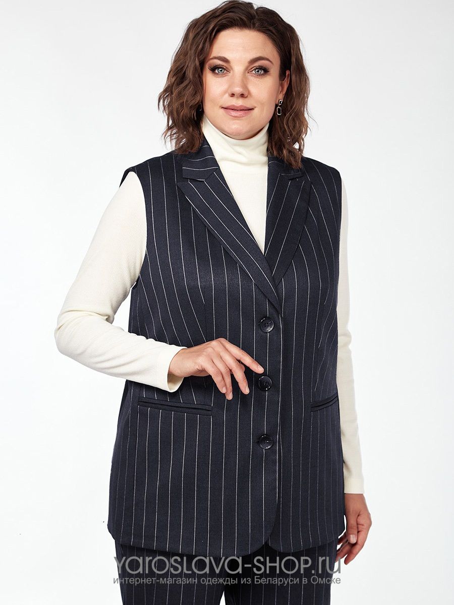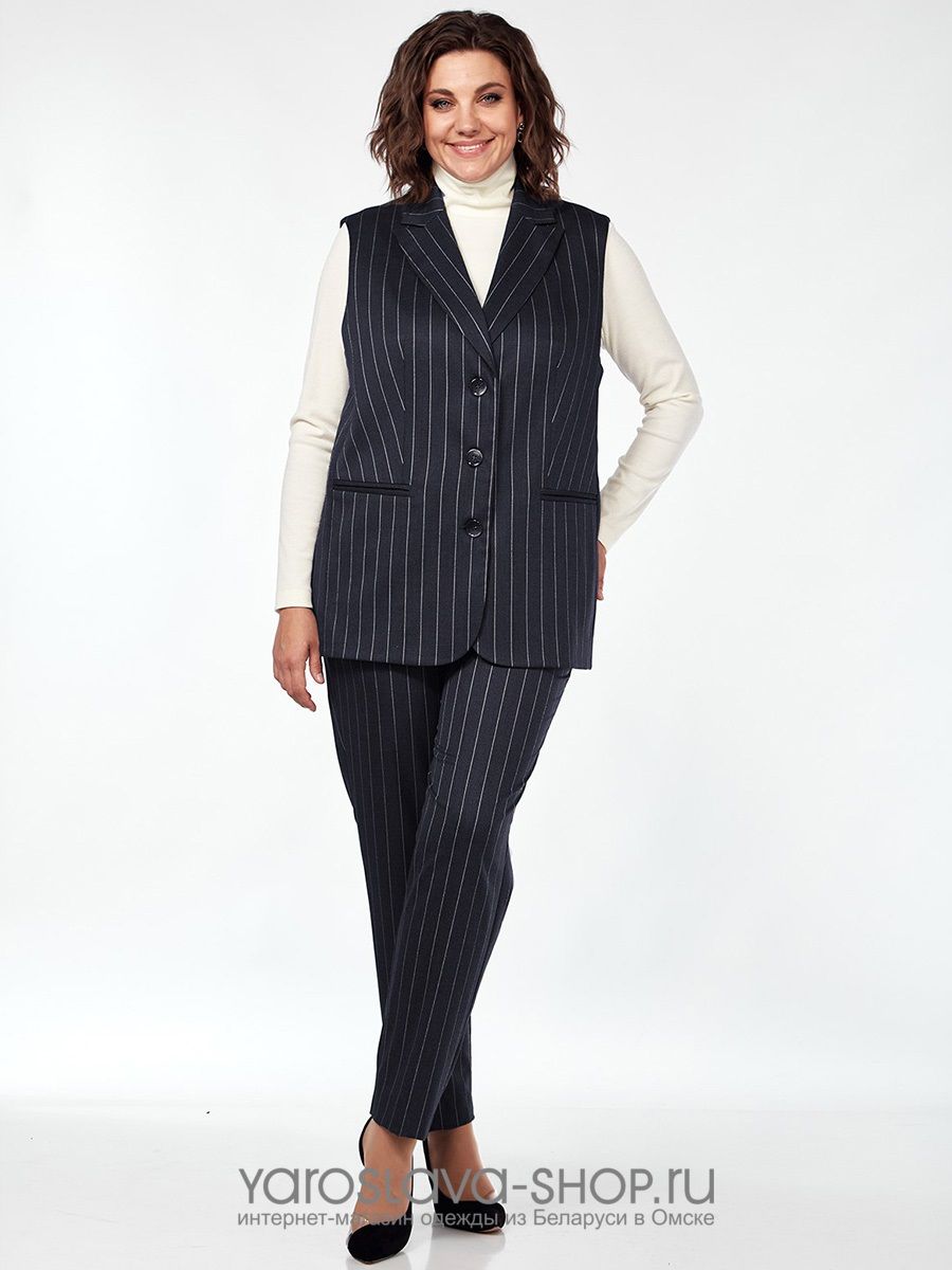 Костюм женский 2-х предметный, состоящий из жилета и брюк, из костюмного материала.