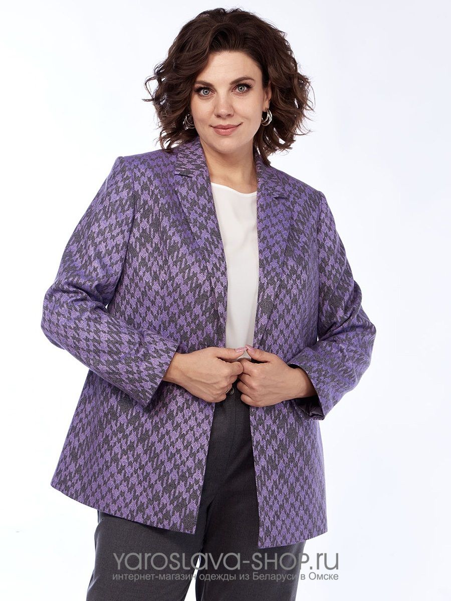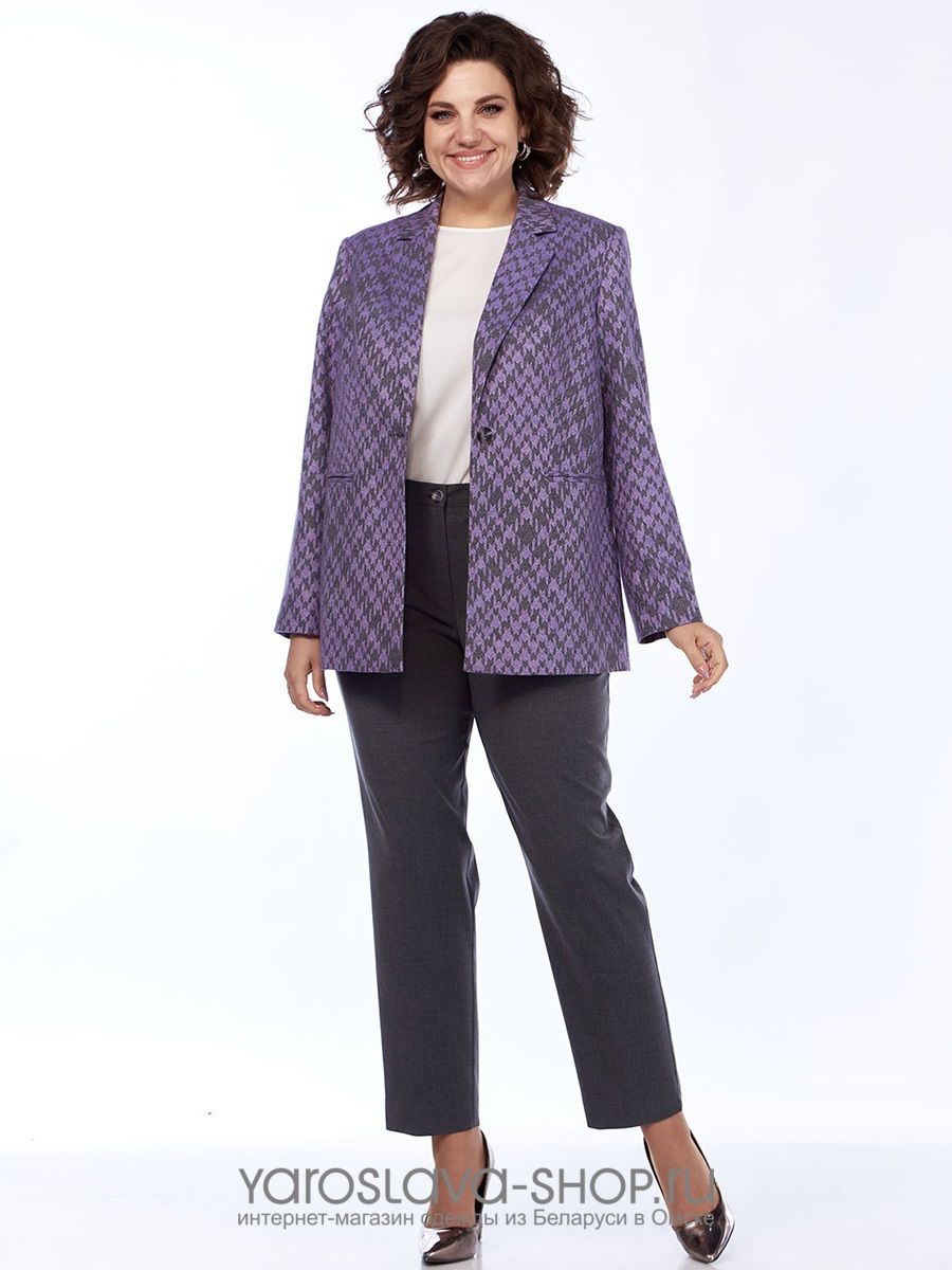 Двухпредметный брючный комплект с жакетом в клетку фиолетового цвета
