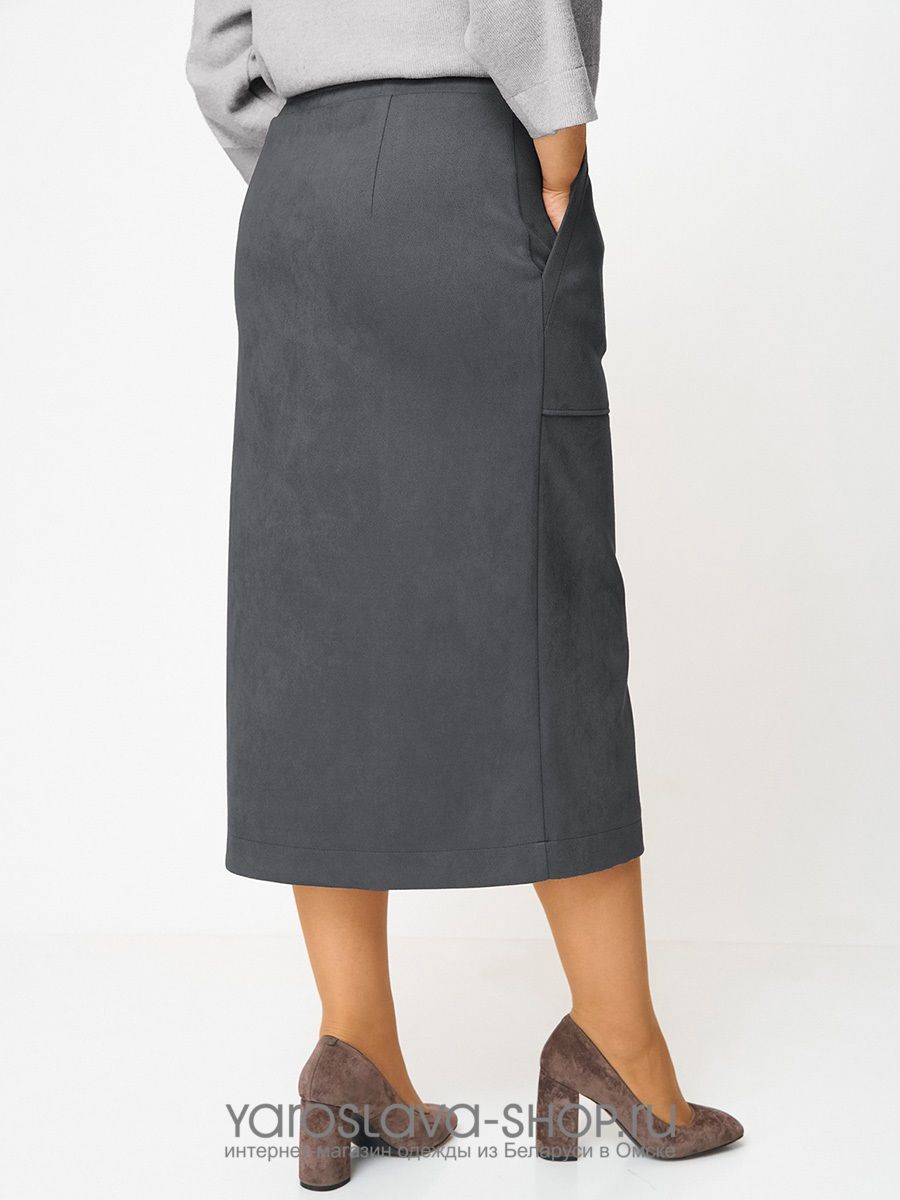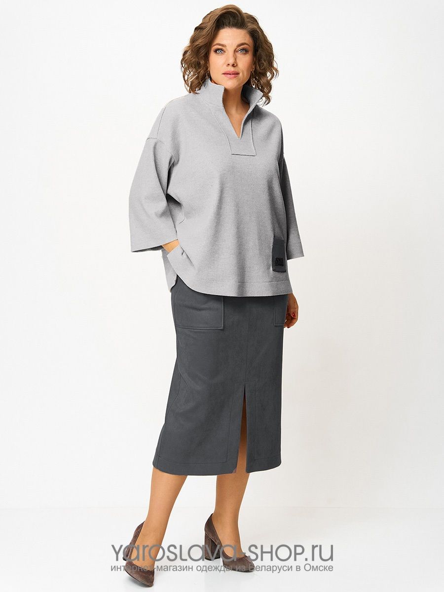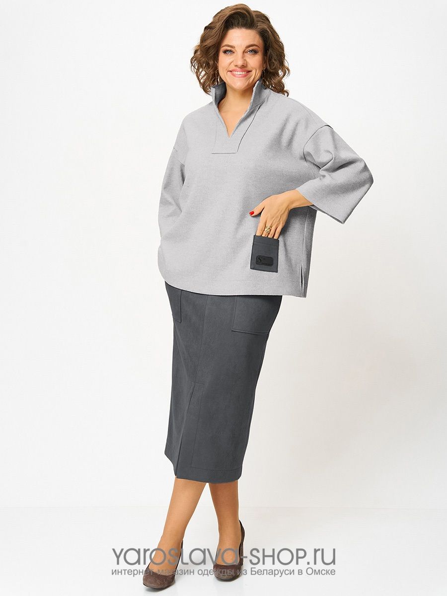 Женский 2-х предметный костюм, состоящий из трикотажной туники и юбки из замши