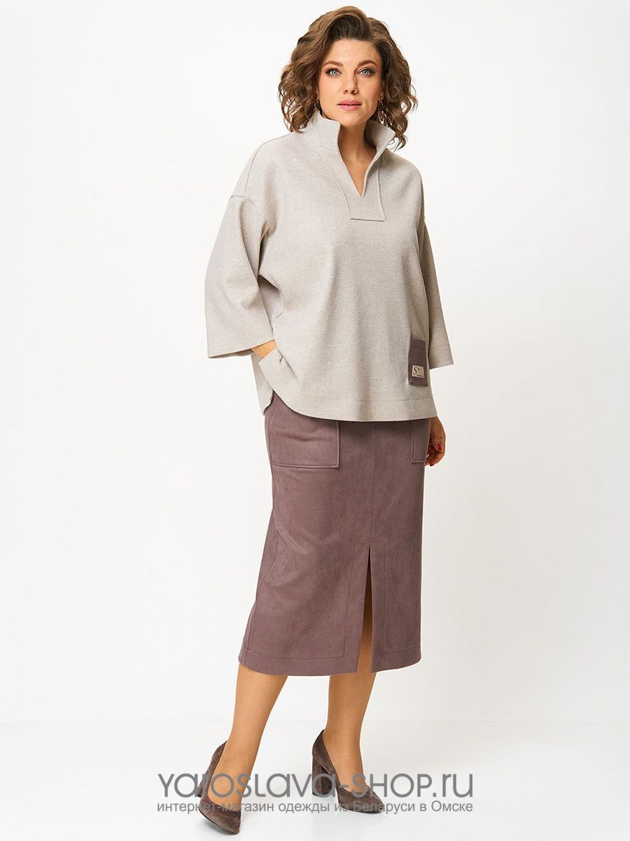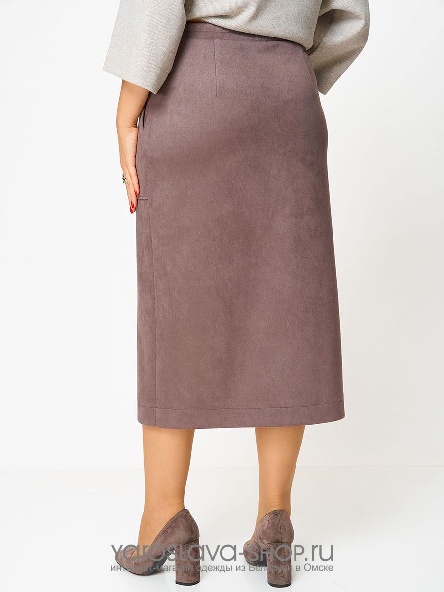 Женский 2-х предметный костюм, состоящий из трикотажной туники и юбки из замши