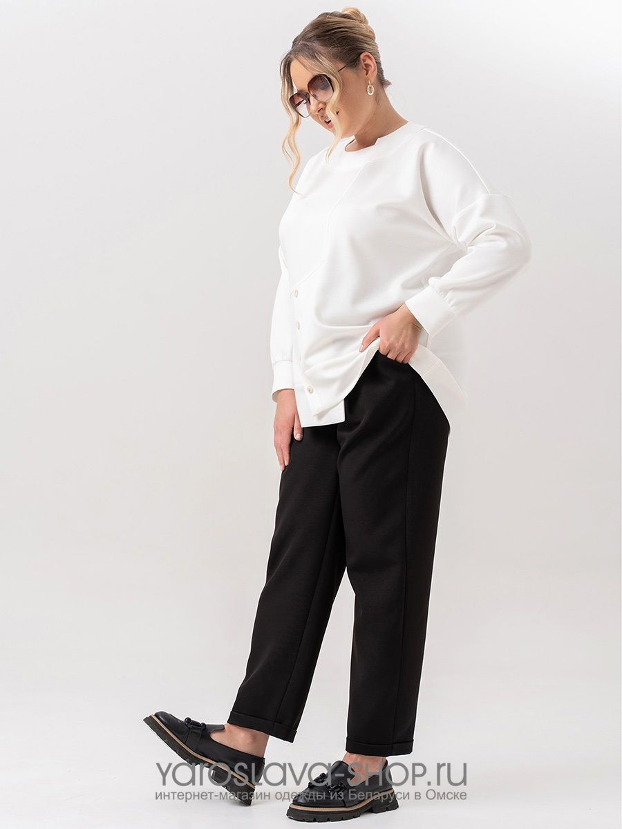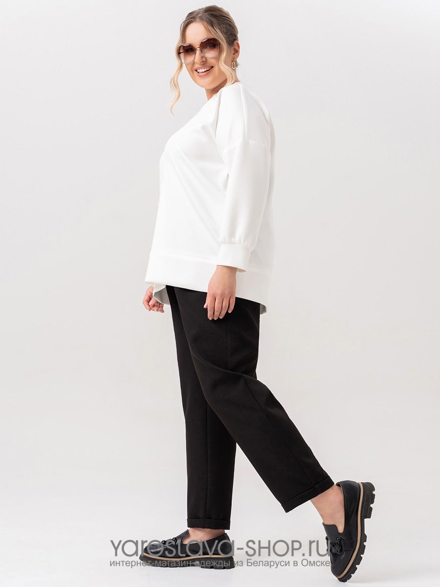 Женский 2-ух предметный комплект, состоящий из белого джемпера и черных брюк 62