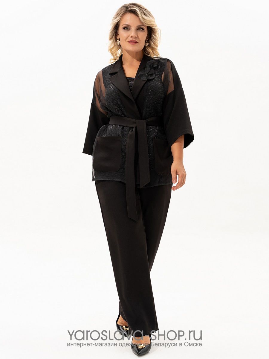 Стильный и изысканный комплект, состоящий из элегантного жакета кимоно, блузы и брюк