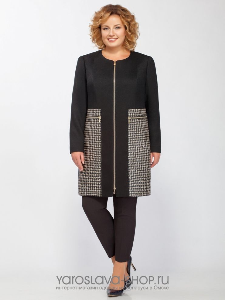 Пальто для начала осени. Застежка-молния с двумя бегунками. По переду имеется два кармана на молниях. Низ пальто декорирован тканью-компаньоном с узором "гусиная лапка".