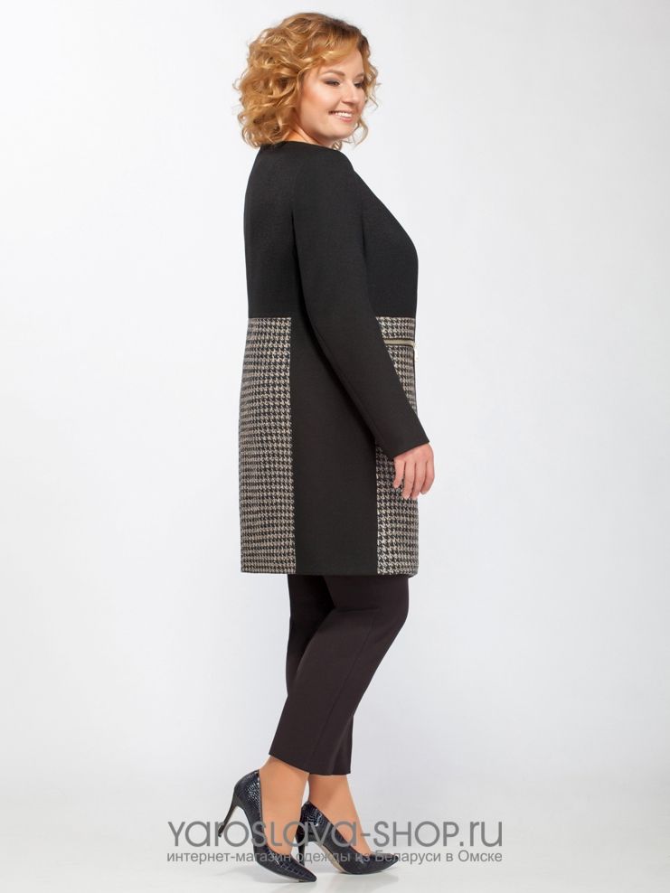 Пальто демисезонное черное с узором гусиные лапки
