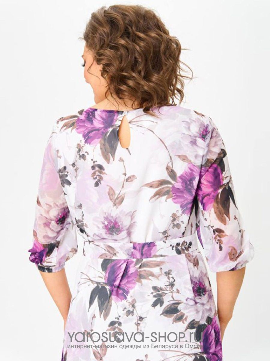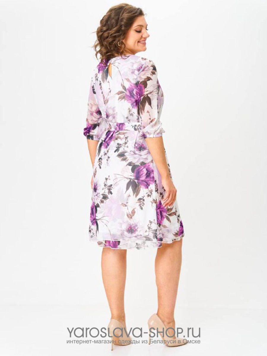 Шифоновое платье А-силуэта с цветочным принтом на белом фоне