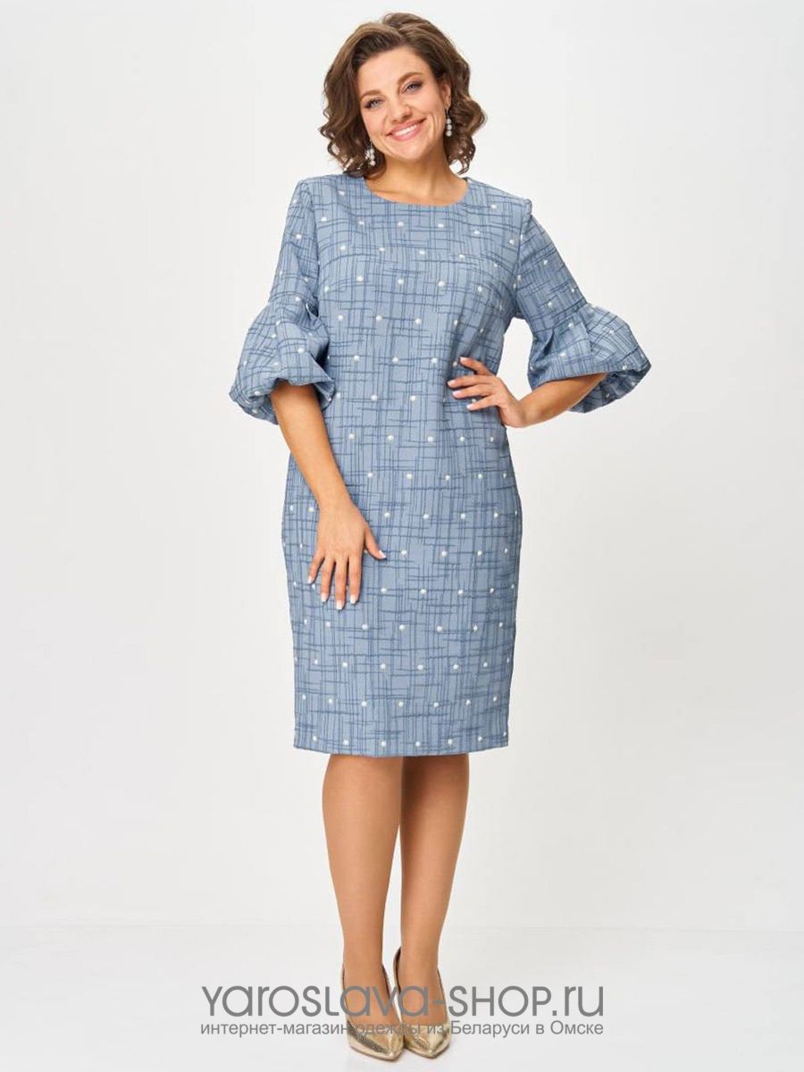 Женское нарядное платье в голубом цвете с объемными рукавами