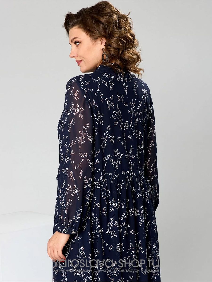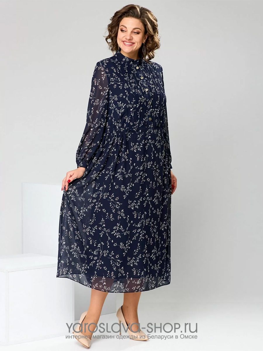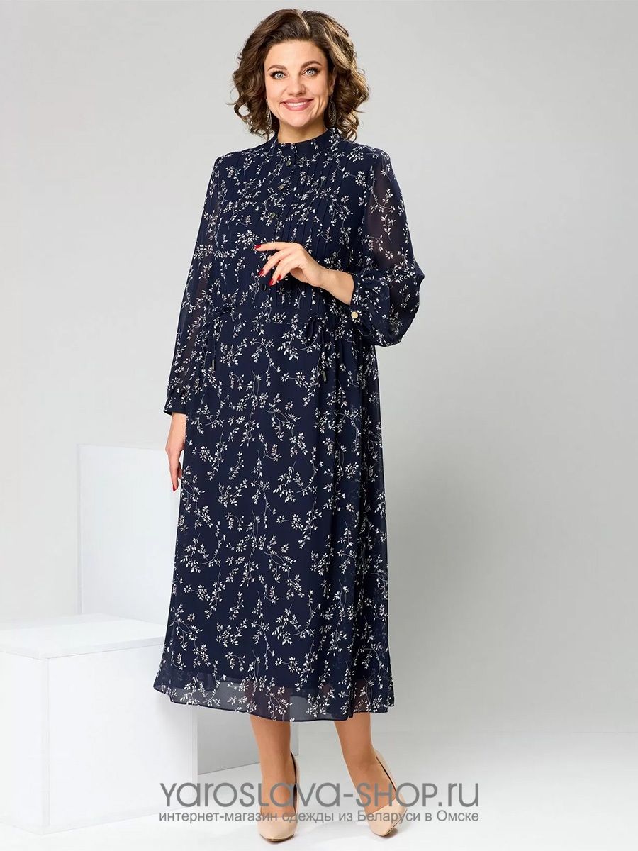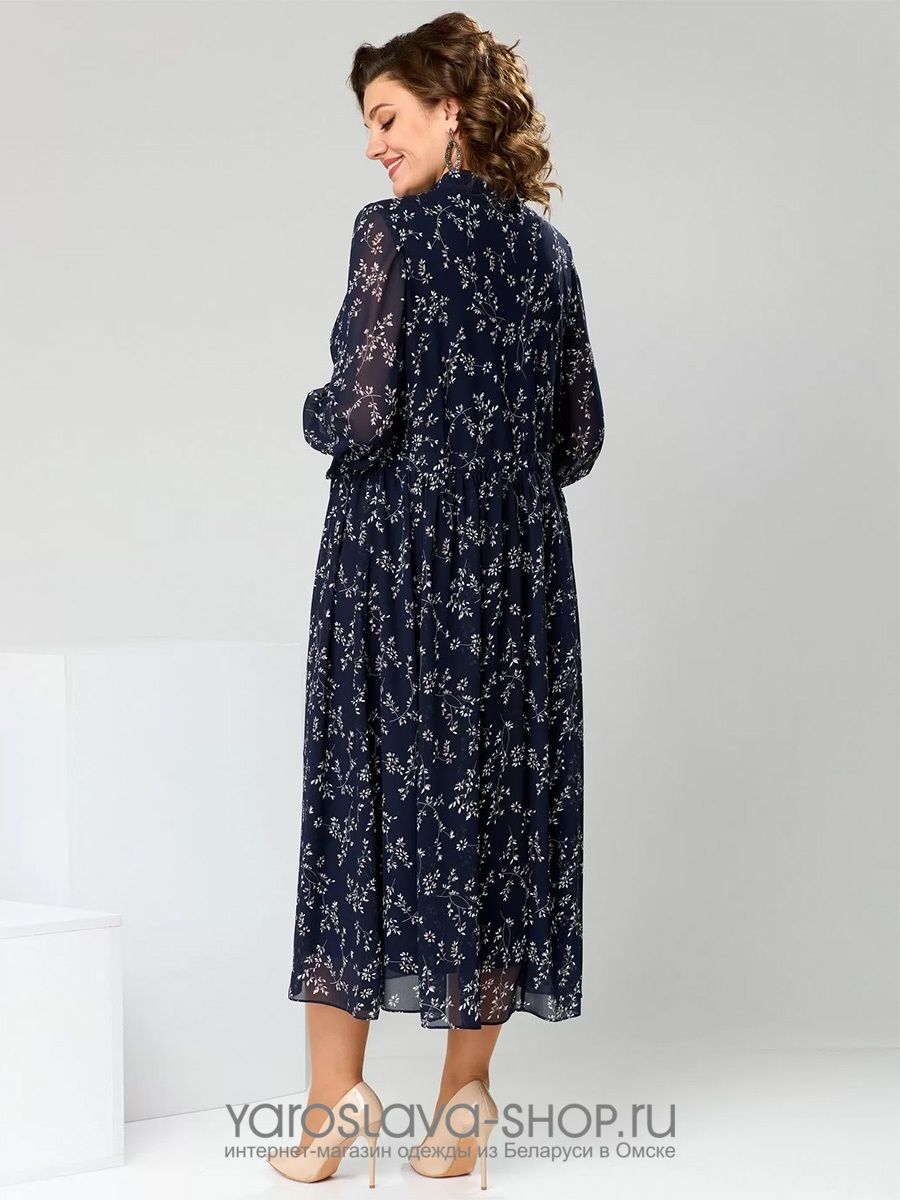 Женское шифоновое платье с цветочным принтом на синем фоне