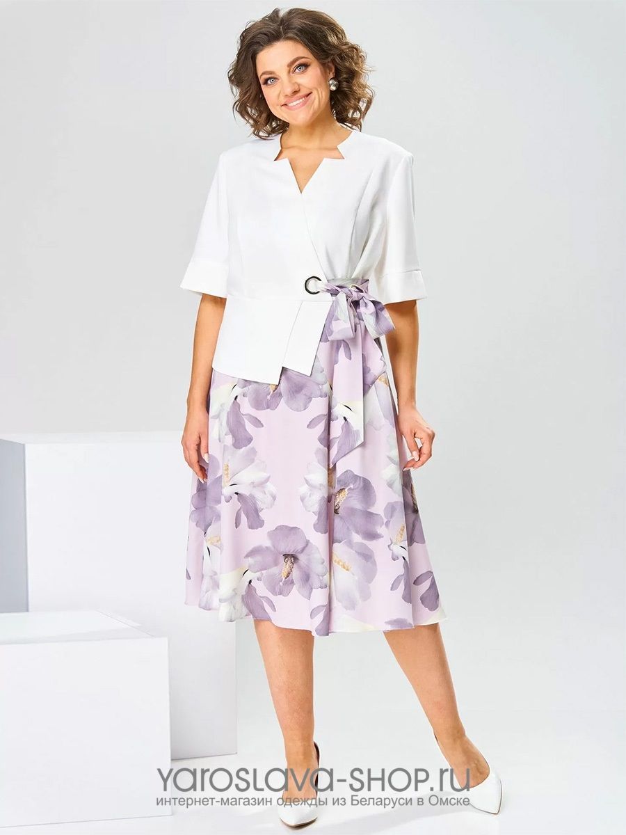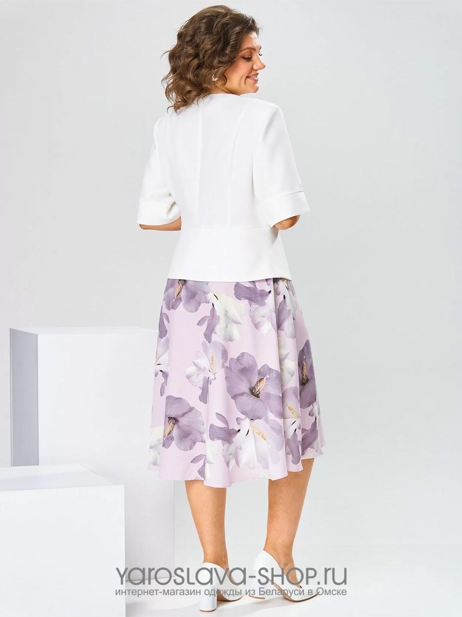 Платье-имитация костюма с белым жакетом и юбкой лавандового цвета