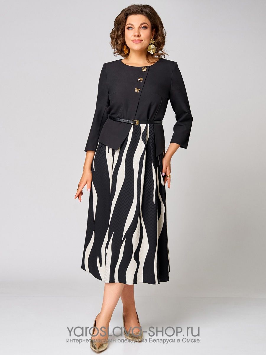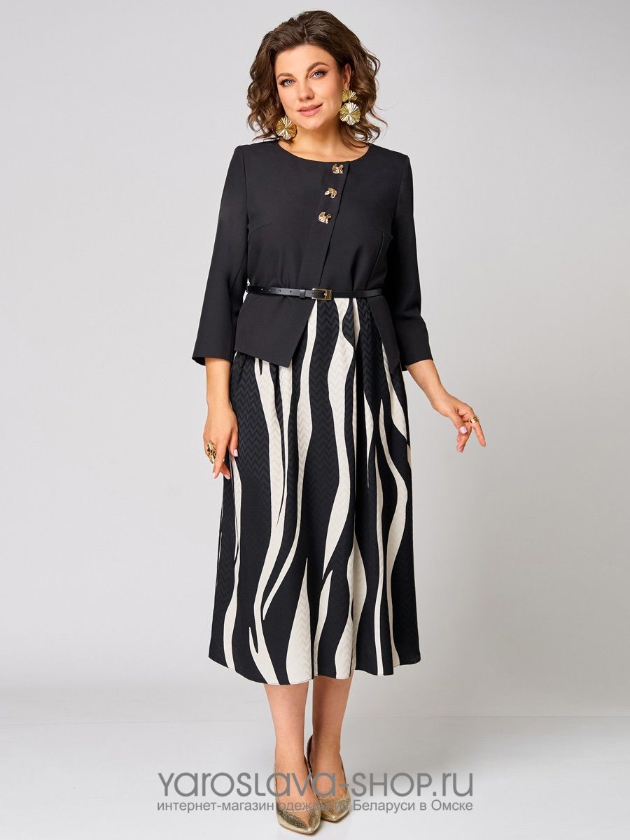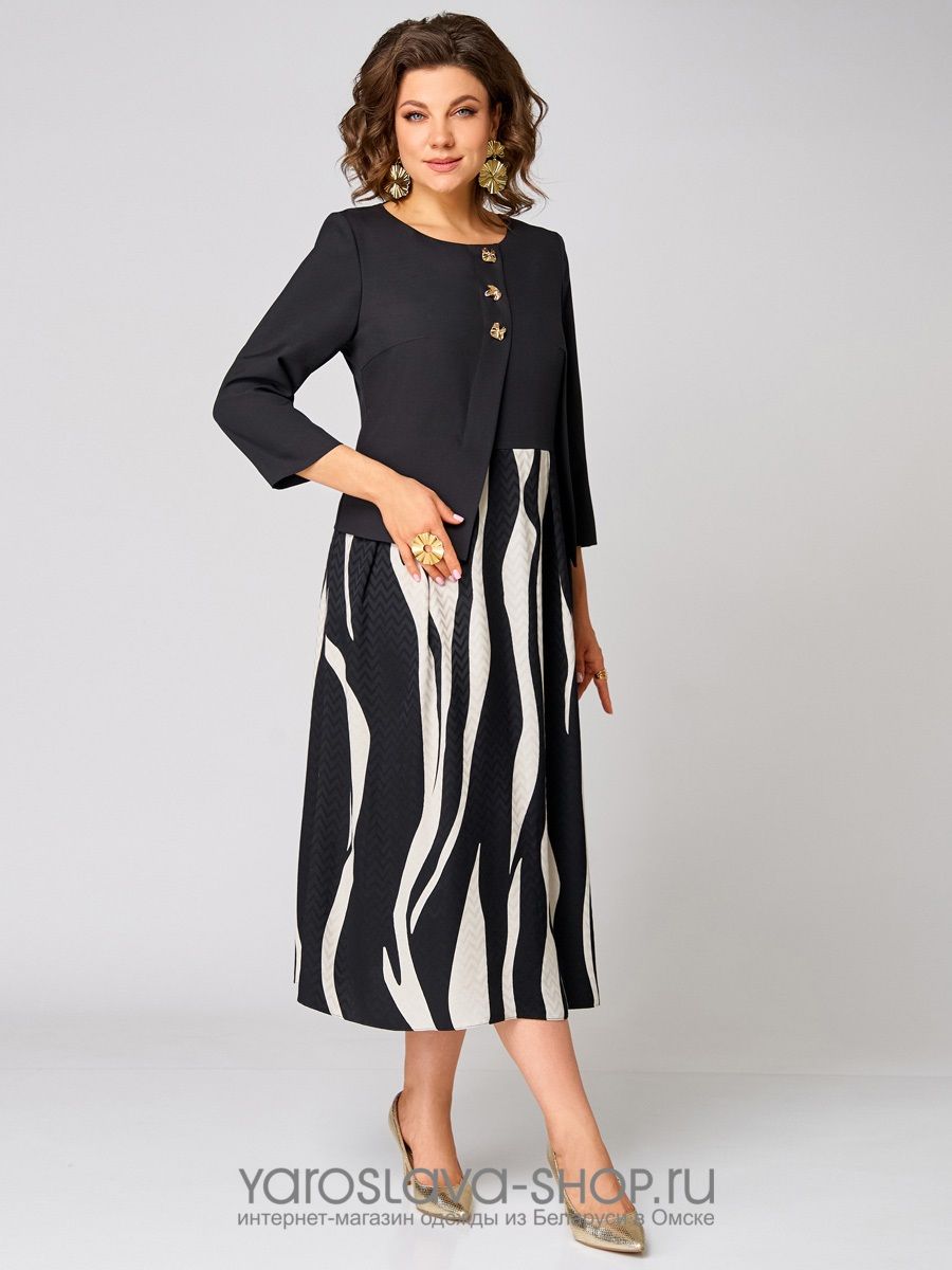 Платье женское А-силуэта в черно-белом цвете