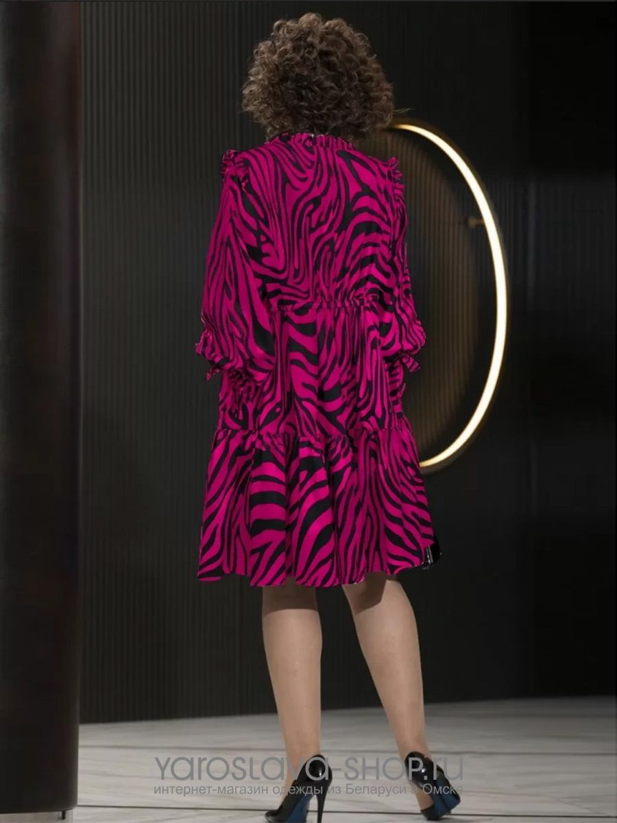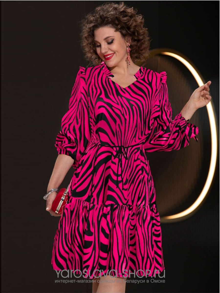 Платье вечернее яркого цвета фуксии с рисунком "зебра"