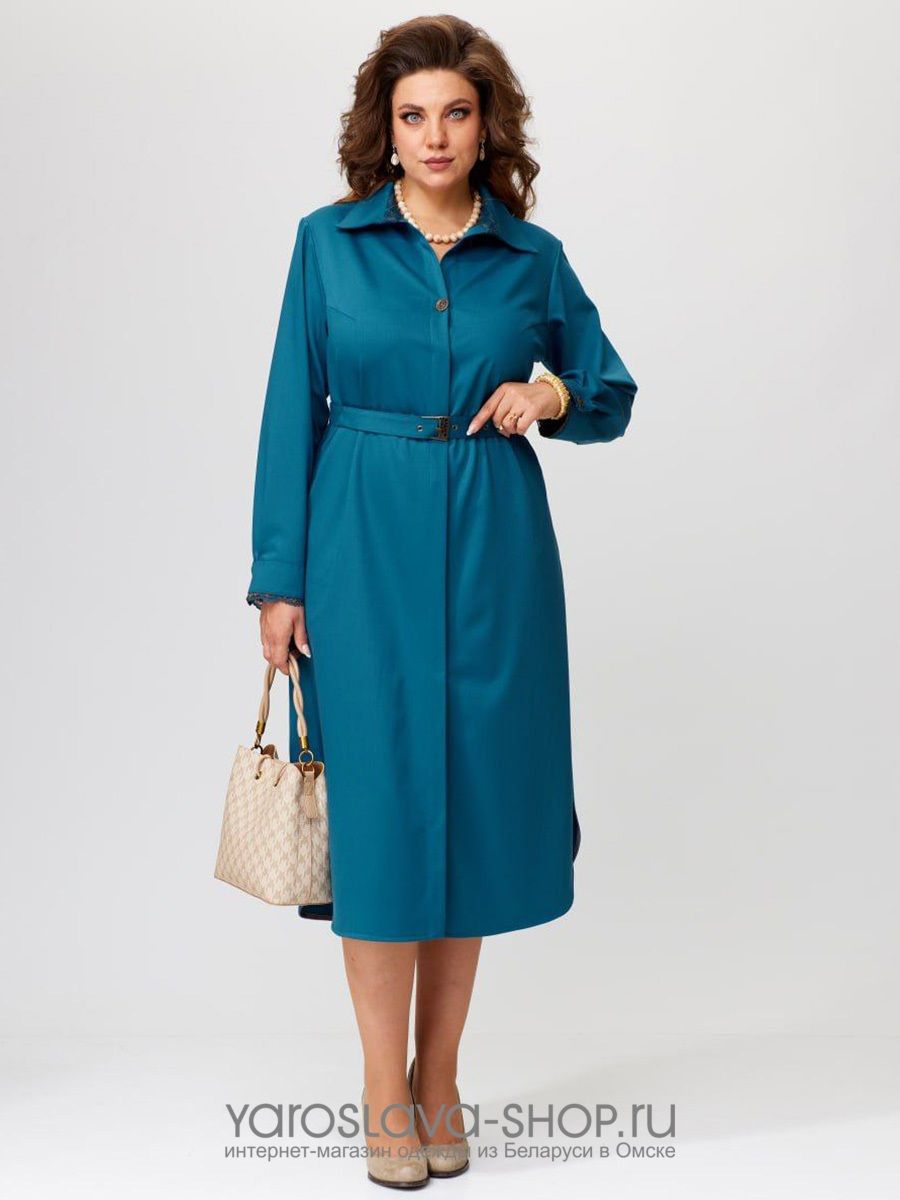 Женское платье-рубашка в бирюзовом цвете
