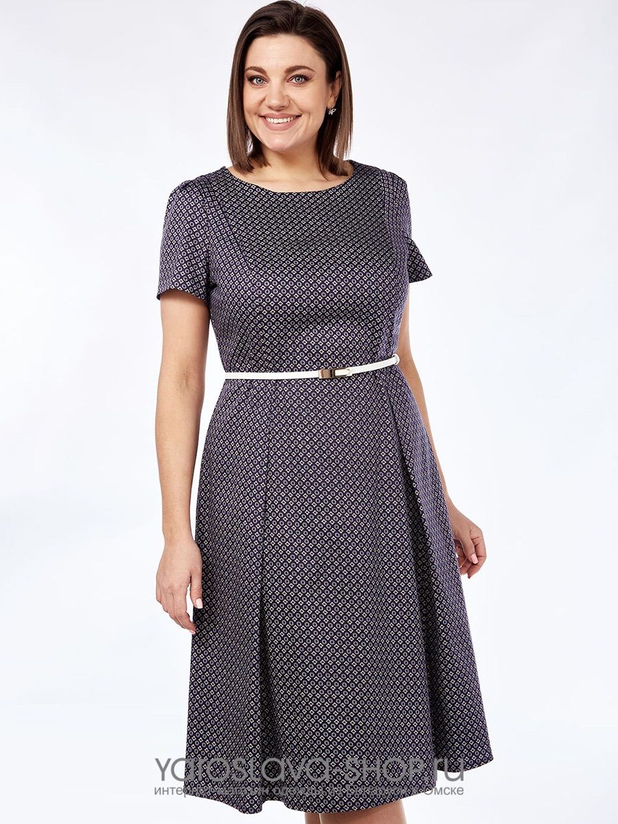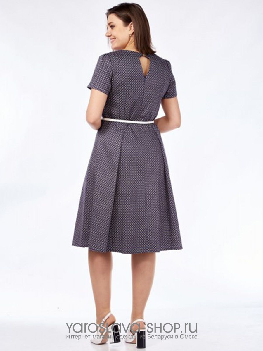 Женское платье А-силуэта темного синего цвета в мелкий рисунок