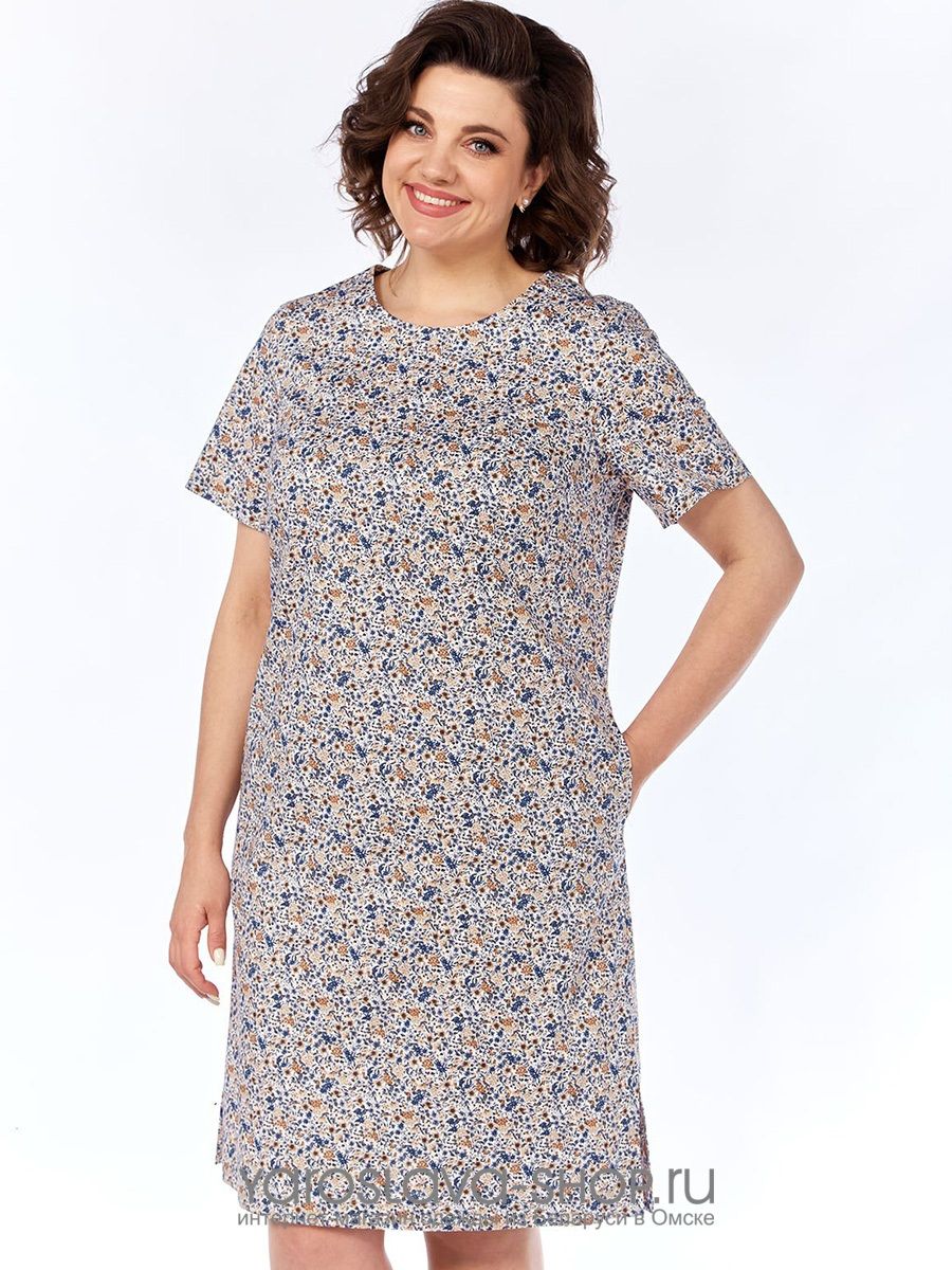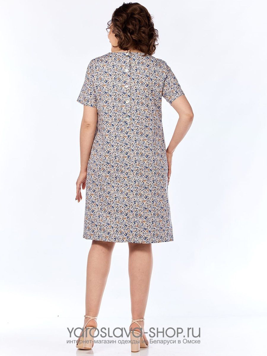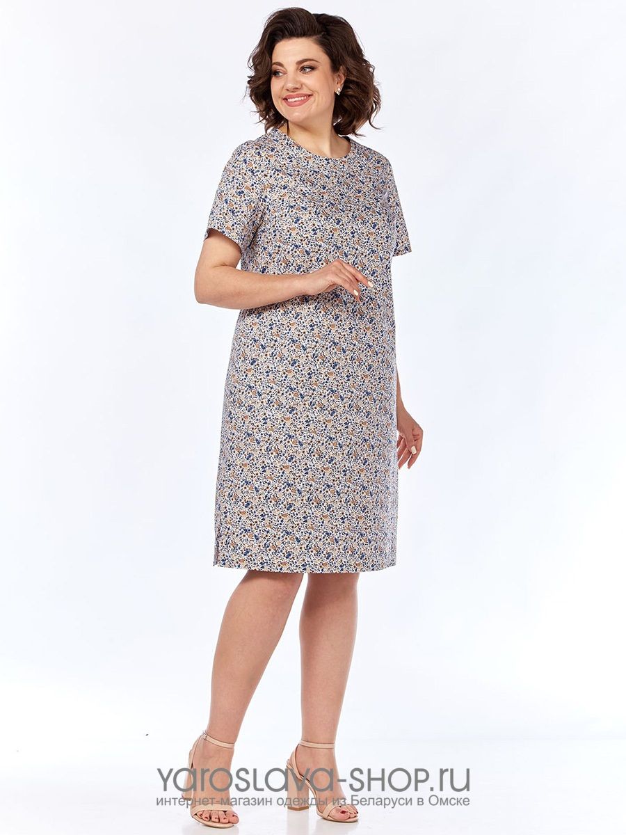 Размер56СезонлетоОттенокголубойСтильповседневныйУзорцветочный/растительныйГорловинакруглый (овальный)РукавкороткийПояс/ремень в комплектеестьПроизводствоРеспублика Беларусь