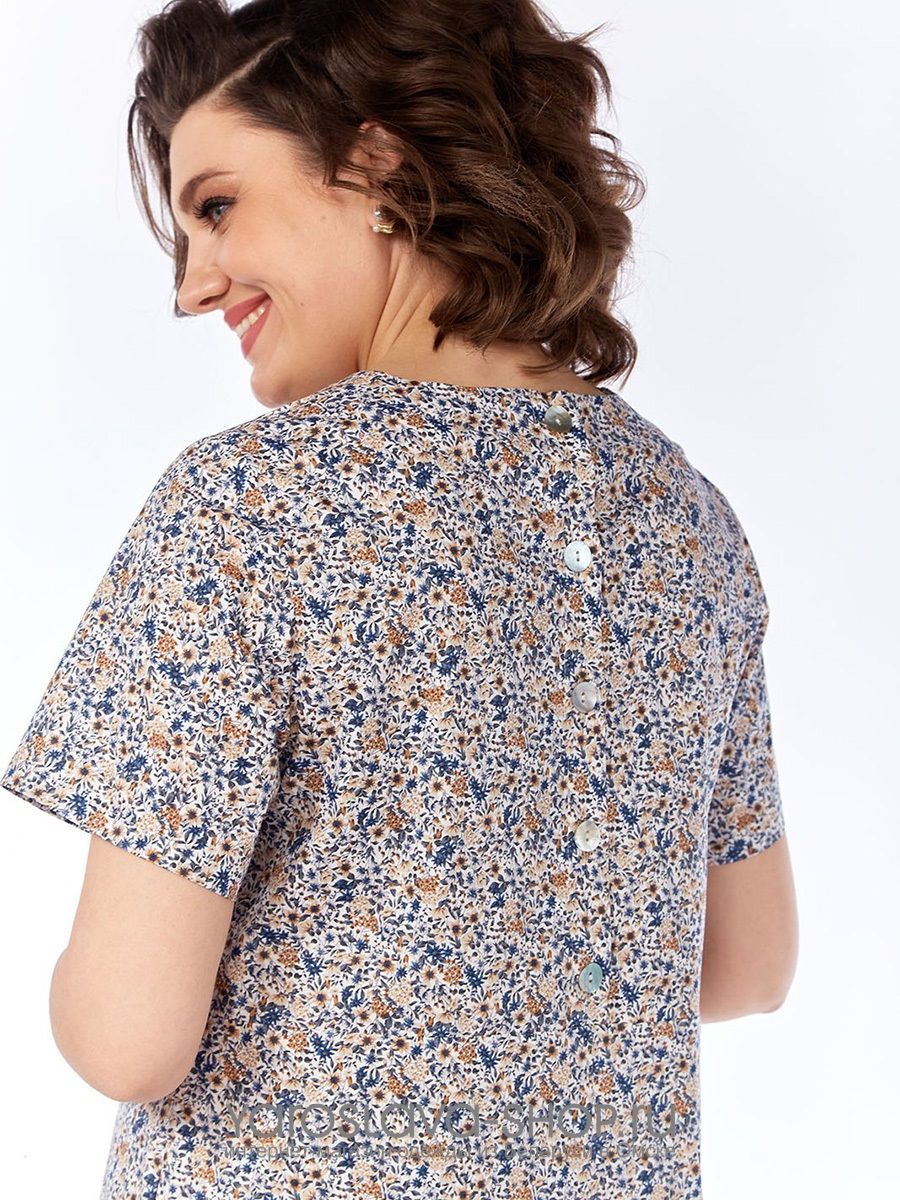 Платье прямого силуэта в мелкий цветочек