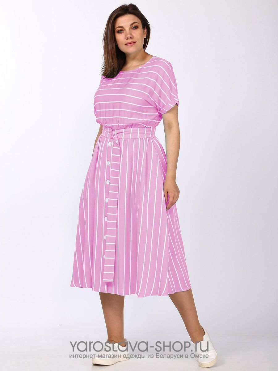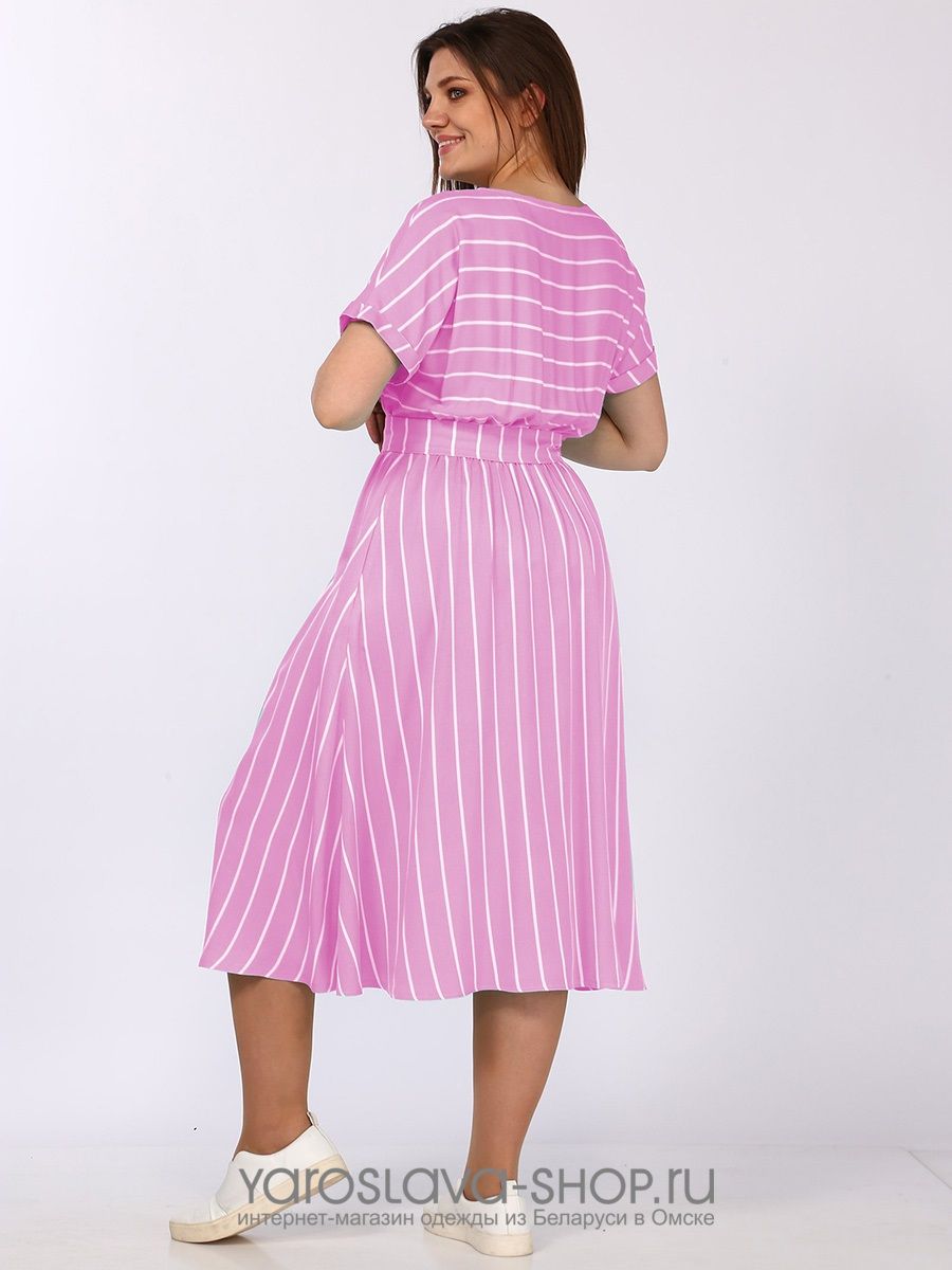 Платье женское штапельное розового цвета в полоску