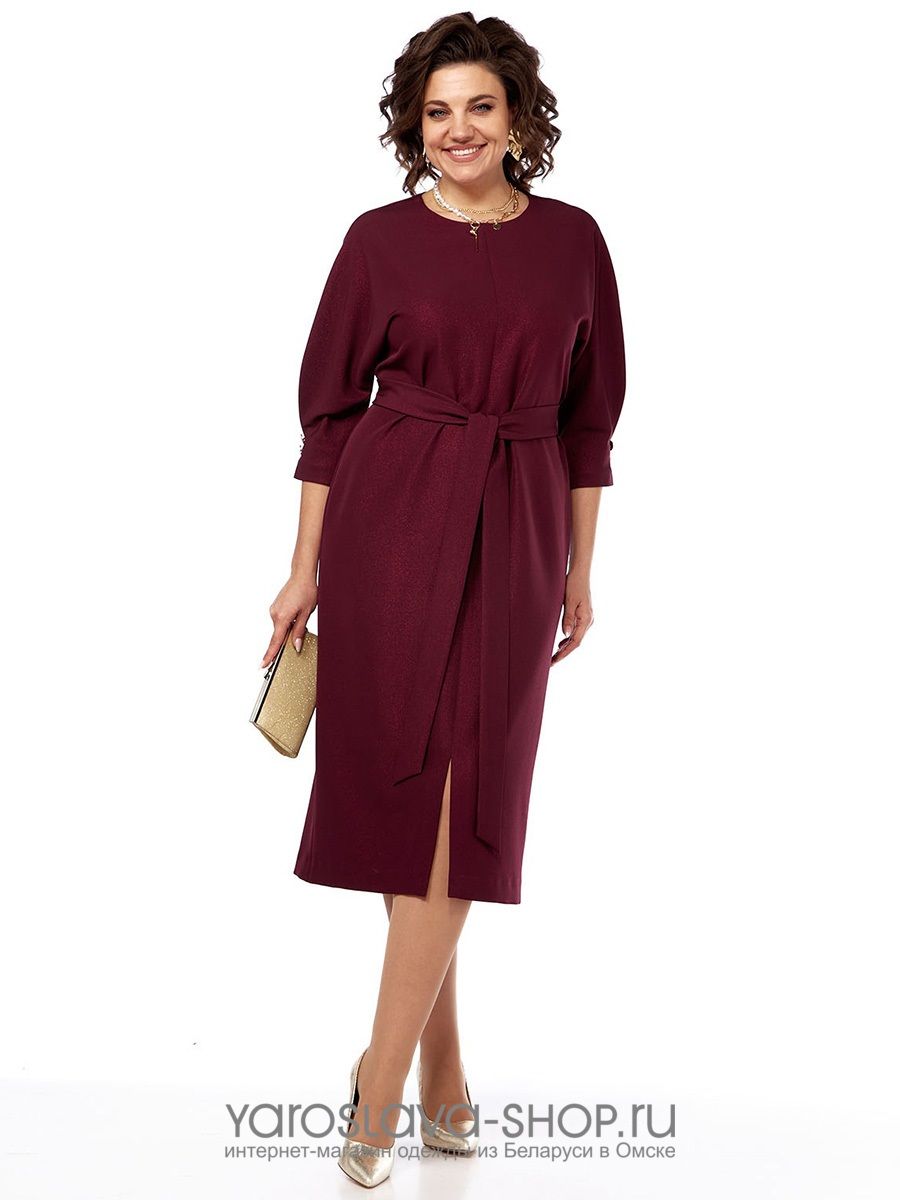 Женское элегантное платье в бордовом цвете