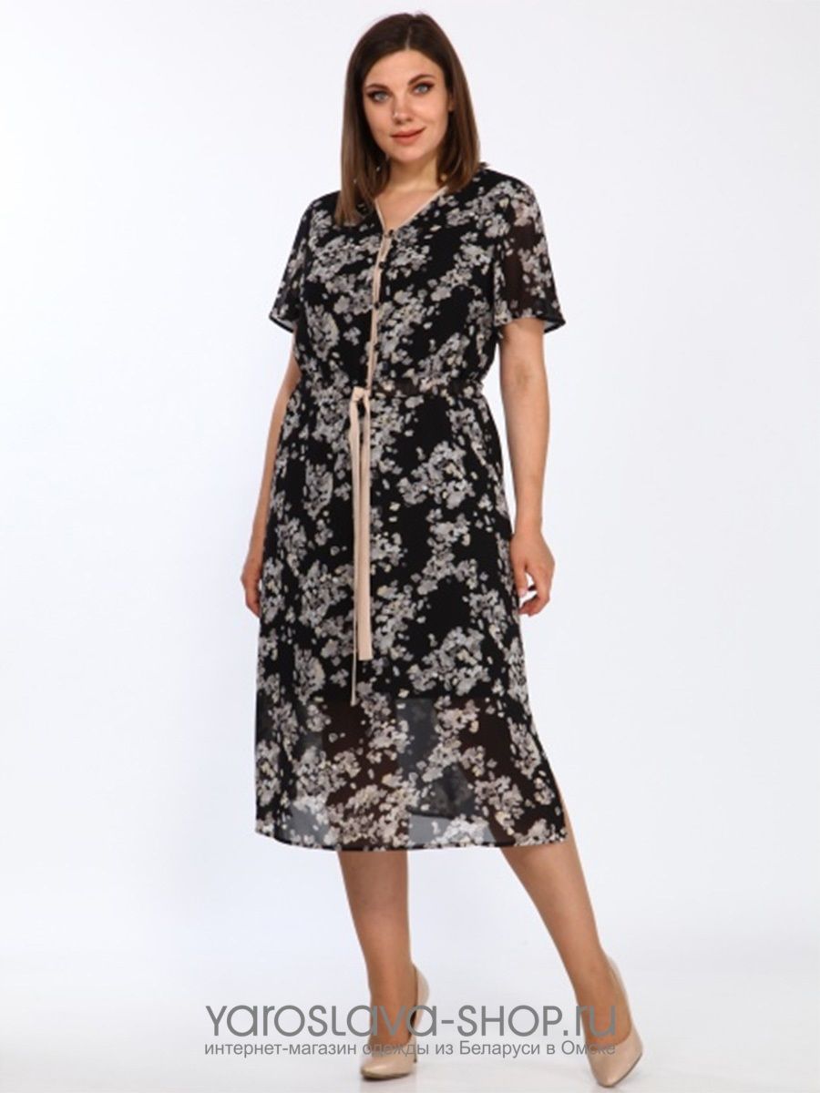 Размер56СезонлетоОттенокчерныйСтильповседневныйУзорцветочный/растительныйГорловинатреугольный (V-образный)Длина платья по спинке115 смДлина рукава платья22 смРукавкороткийПояс/ремень в комплектеестьПроизводствоРеспублика Беларусь
