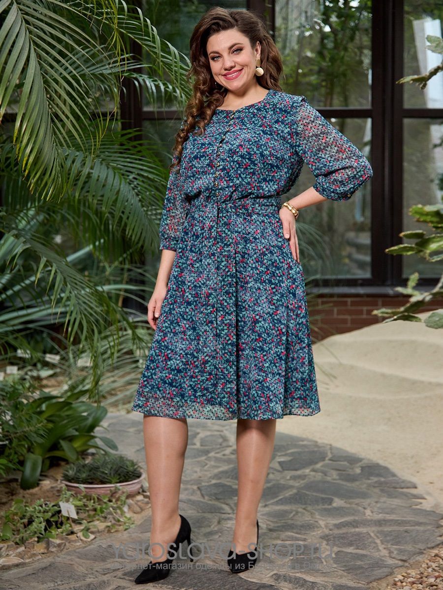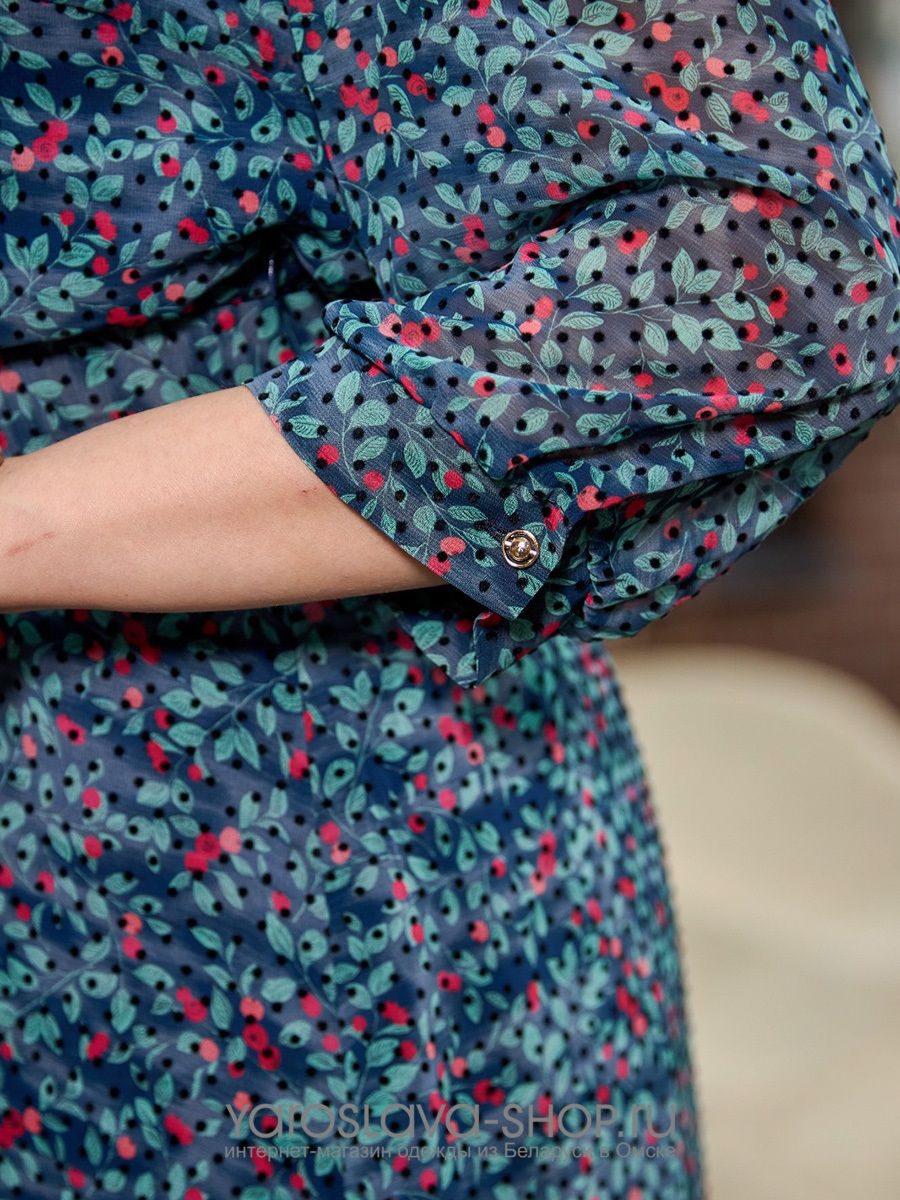 Шифоновое в цветочный принт платье. Расширенное к низу платье прямого силуэта на резинке по линии талии прекрасно скрывает нюансы фигуры и подчеркивает достоинства. На платье по рельефу переда юбки обработан разрез. Рукав длиной чуть ниже локтя, низ рукава на резинке. В комплект к платью входит сьёмный пояс. Длину изделия можно отрегулировать благодаря подрезу с резинкой на талии. Платье шикарно будет смотреться как с туфлями на каблуке, так и с кедами.