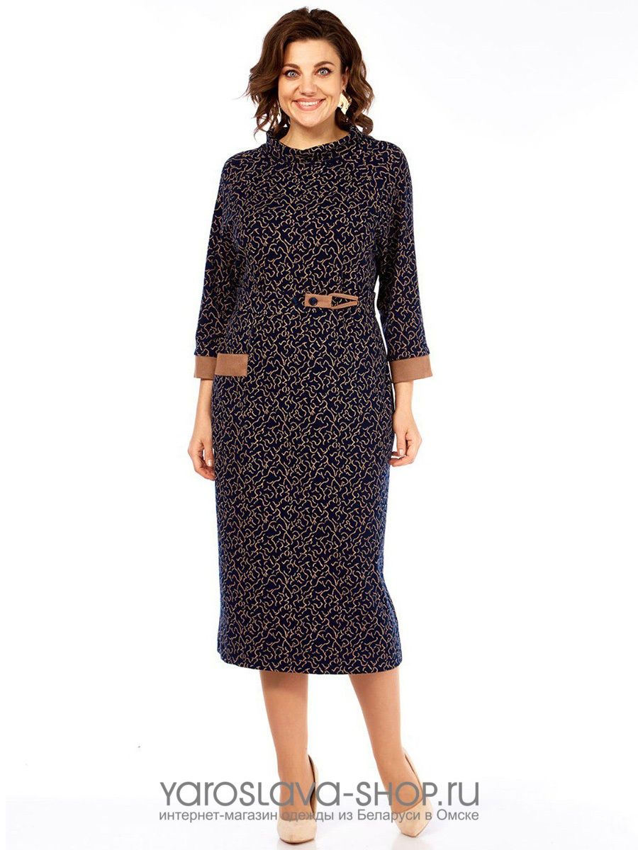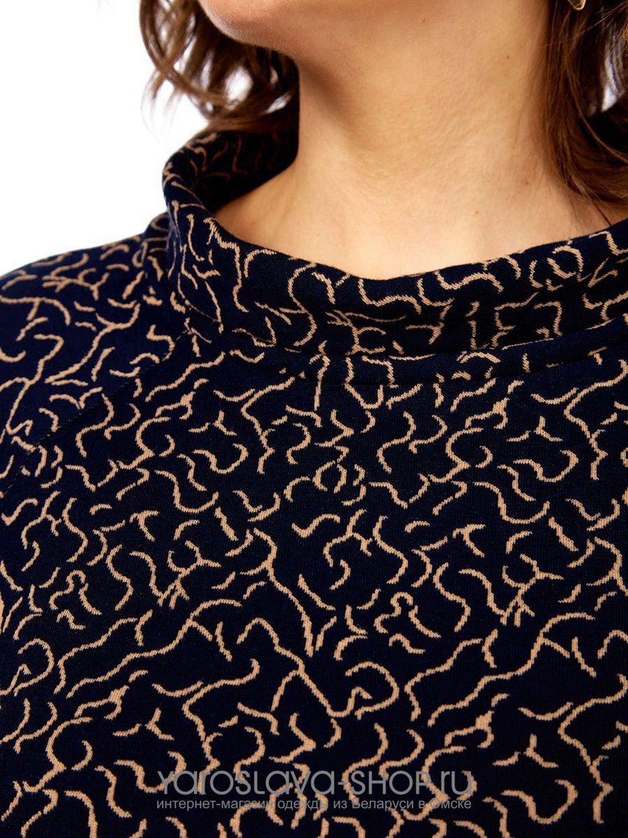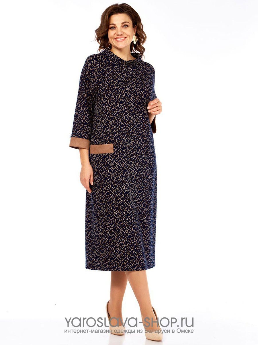 Женское трикотажное платье прямого силуэта в синем цвете