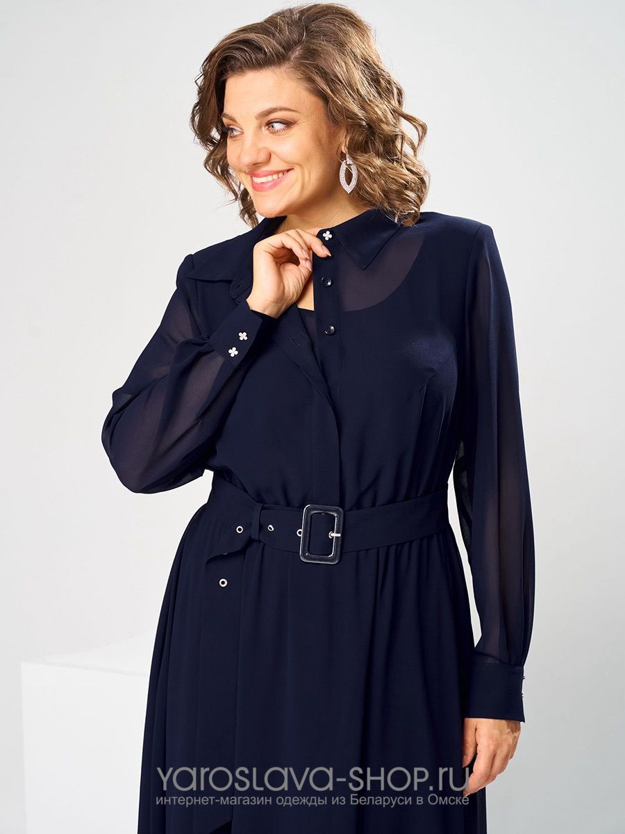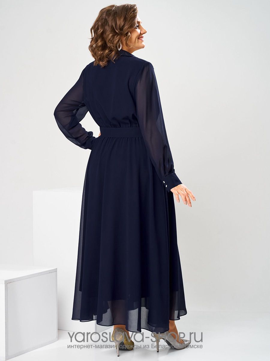 Женское эффектное шифоновое платье в синем цвете