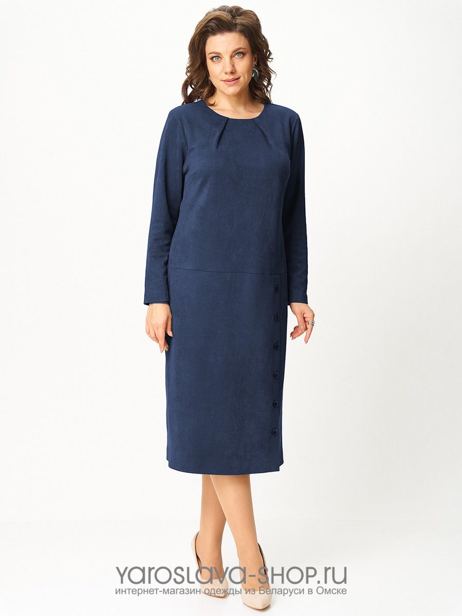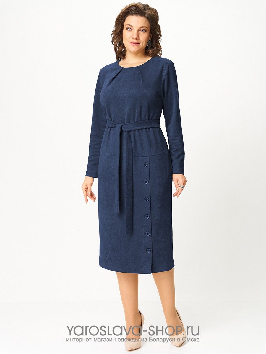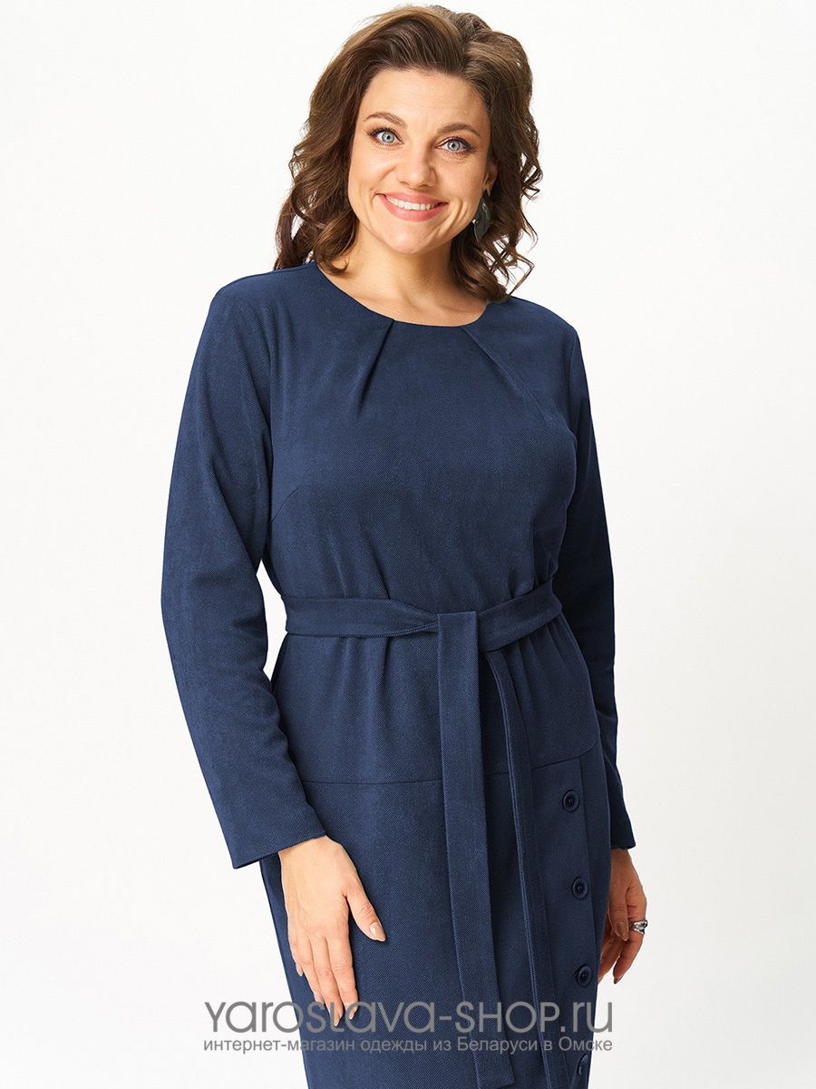 Женское платье полуприлегающего силуэта в синем цвете