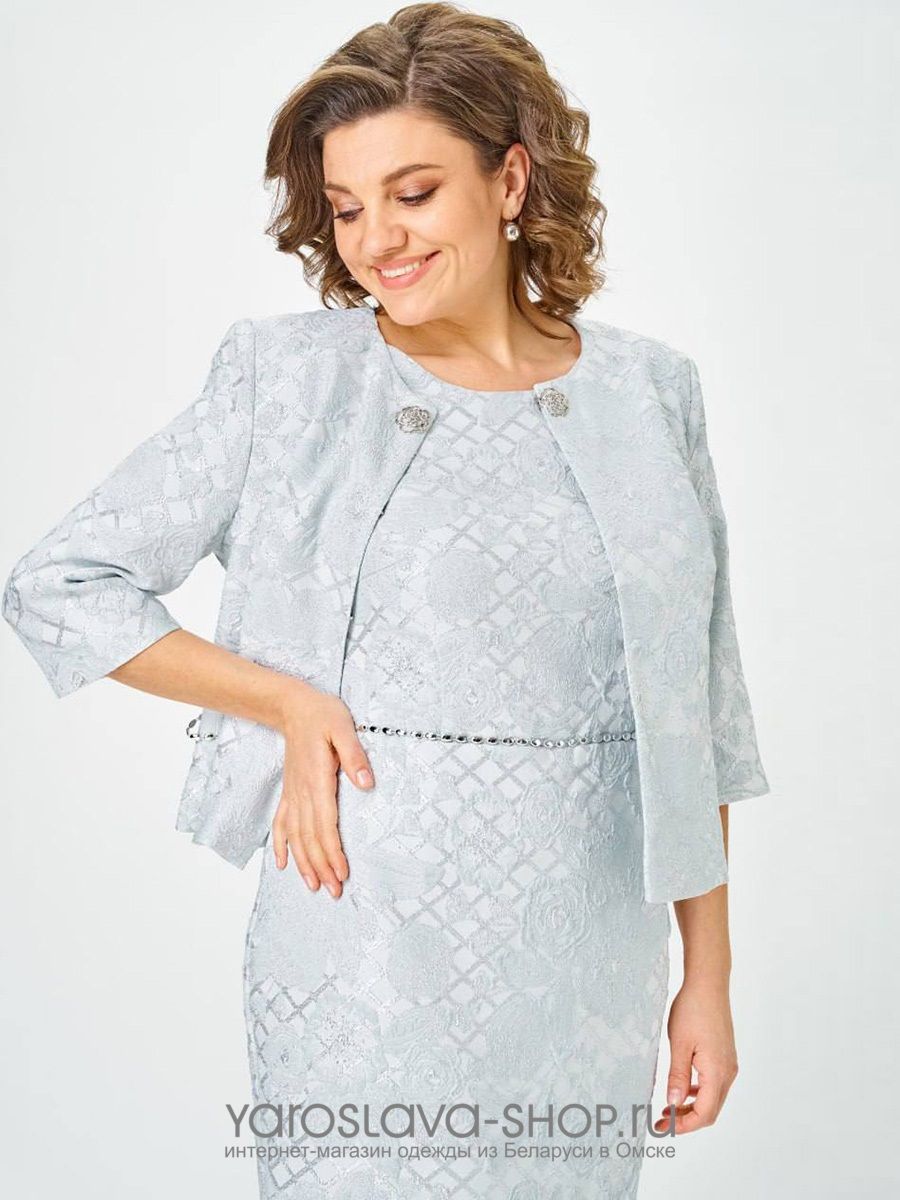 Нарядный женский комплект в голубом цвете, состоящий из жакета и платья