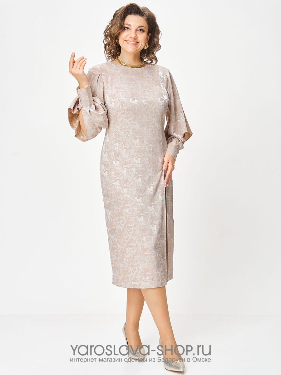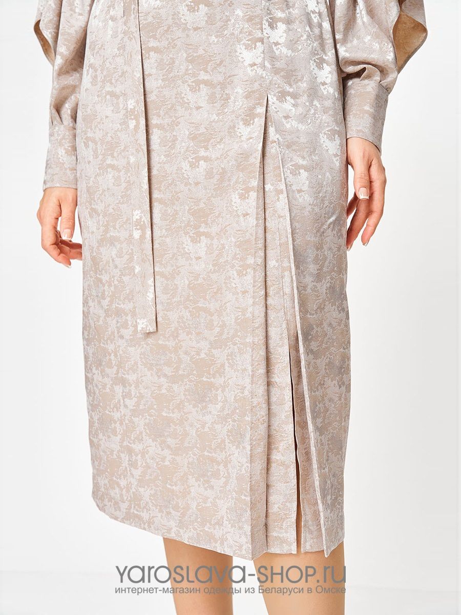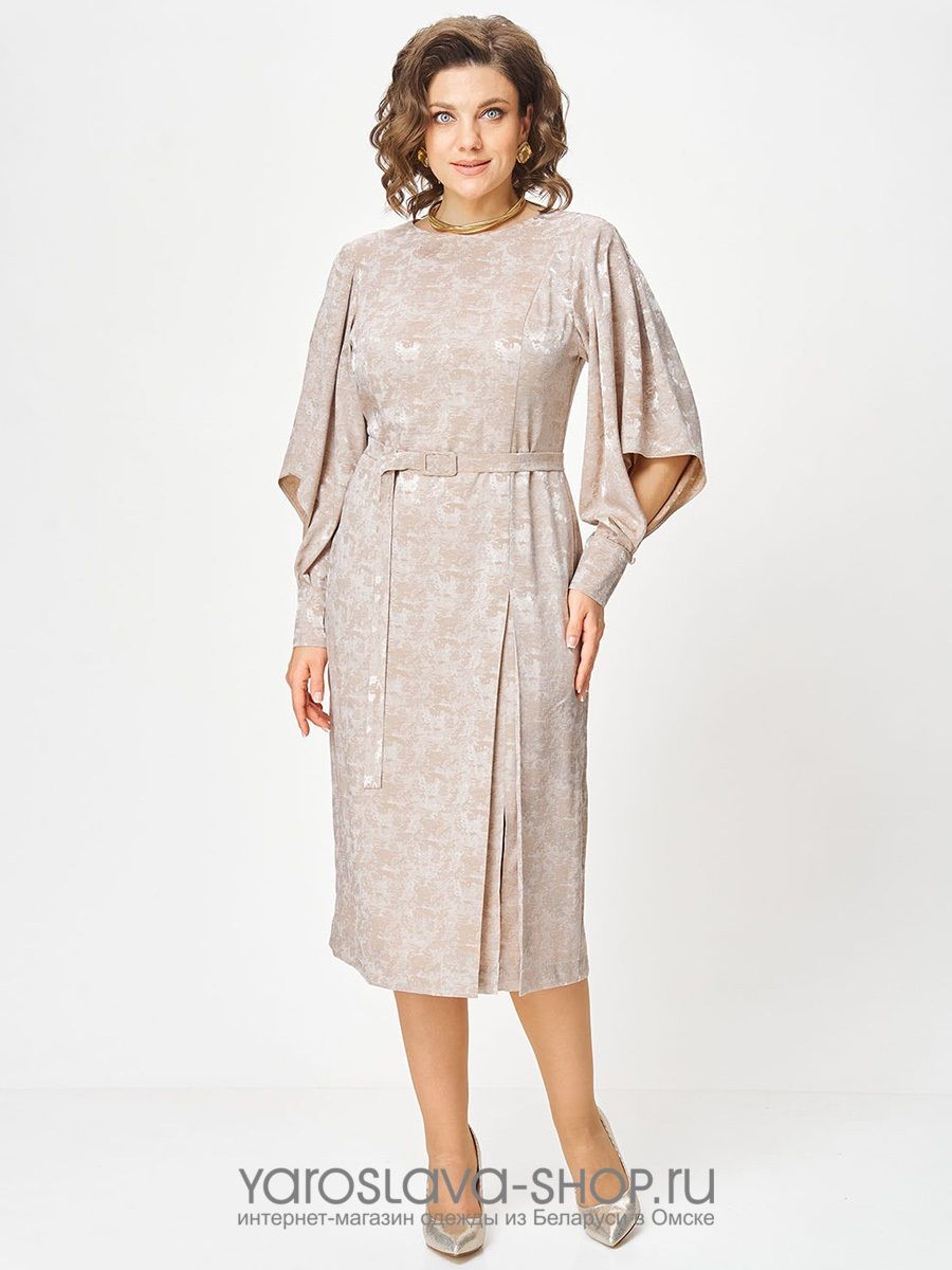 Женское изящное платье полуприлегающего силуэта в бежевом цвете