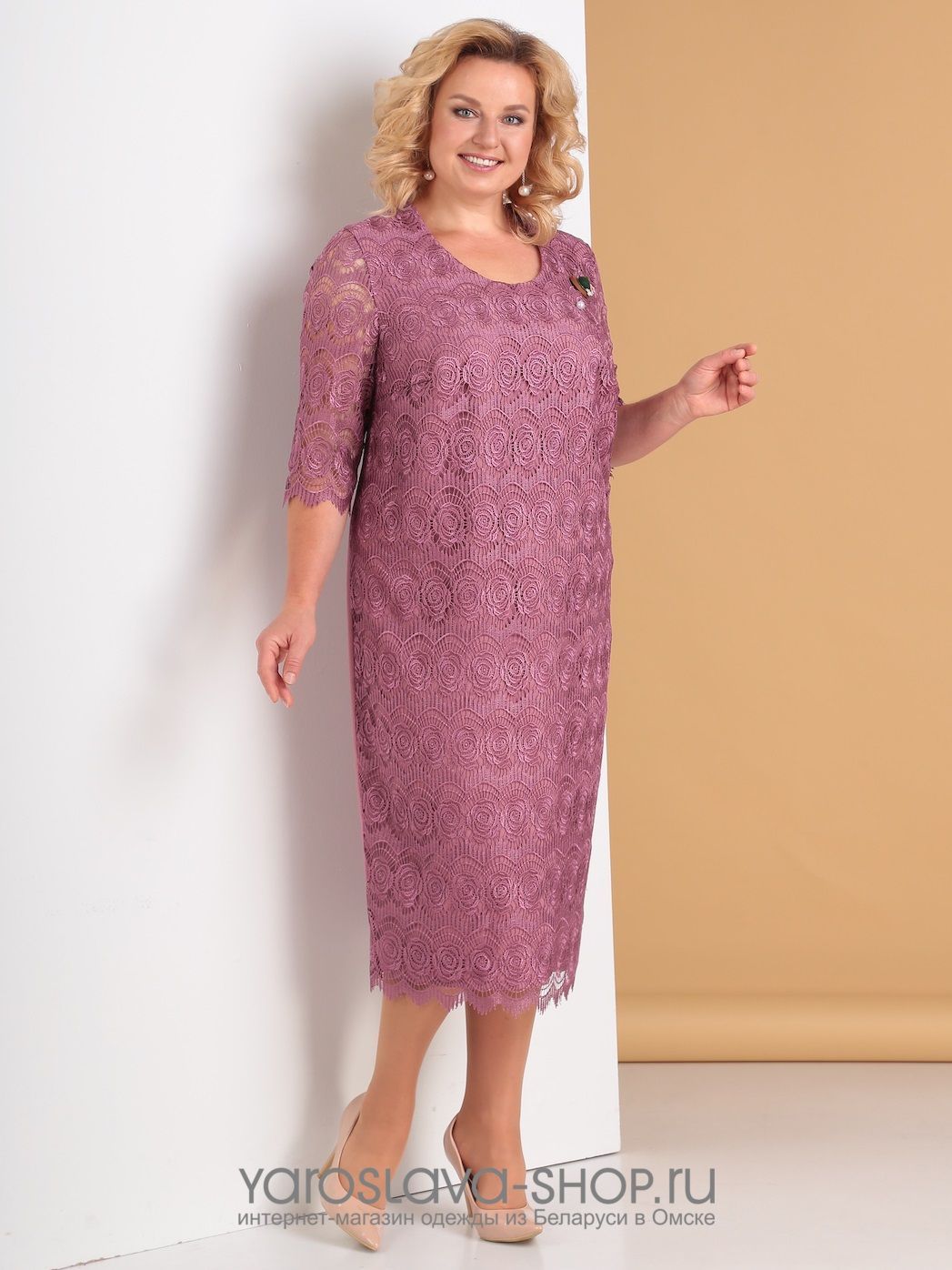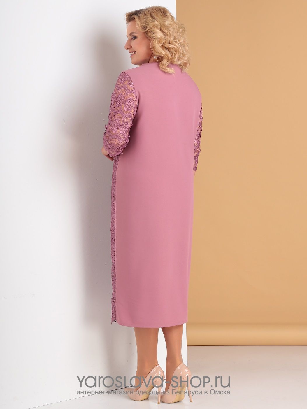 Платье "футляр", с нагрудными вытачками по переду. Платье идеально "садится" по фигуре. Вырез горловины круглый, рукава втачные, 3/4 длины. Спинка из ткани-компаньона в тон к кружевной. Низ платья и низ рукавов оформлены кружевными фестонами.
