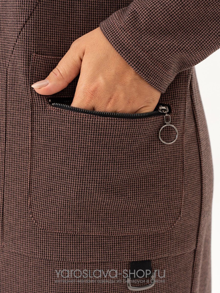 Женское платье прямого силуэта, из трикотажного полотна. На полочке обработан накладной карман с молнией и. Рукав длинный со спущенной линией плеча. Спинка со средним швом и талевыми выточками. Фасон интересен тем, что модельные линии как нельзя лучше подчеркивают плавные изгибы женской фигуры. В данной модели платья Вам не скрыться от неравнодушных взглядов противоположного пола. Оно станет отличным выбором осенью и зимой для офиса, для праздника, на каждый день, а также для прогулок. Платье подойдет как для высоких, так и для невысоких девушек и женщин. Такой стильный наряд для полных станет любимой вещью в гардеробе и сделает Ваш образ незабываемым!