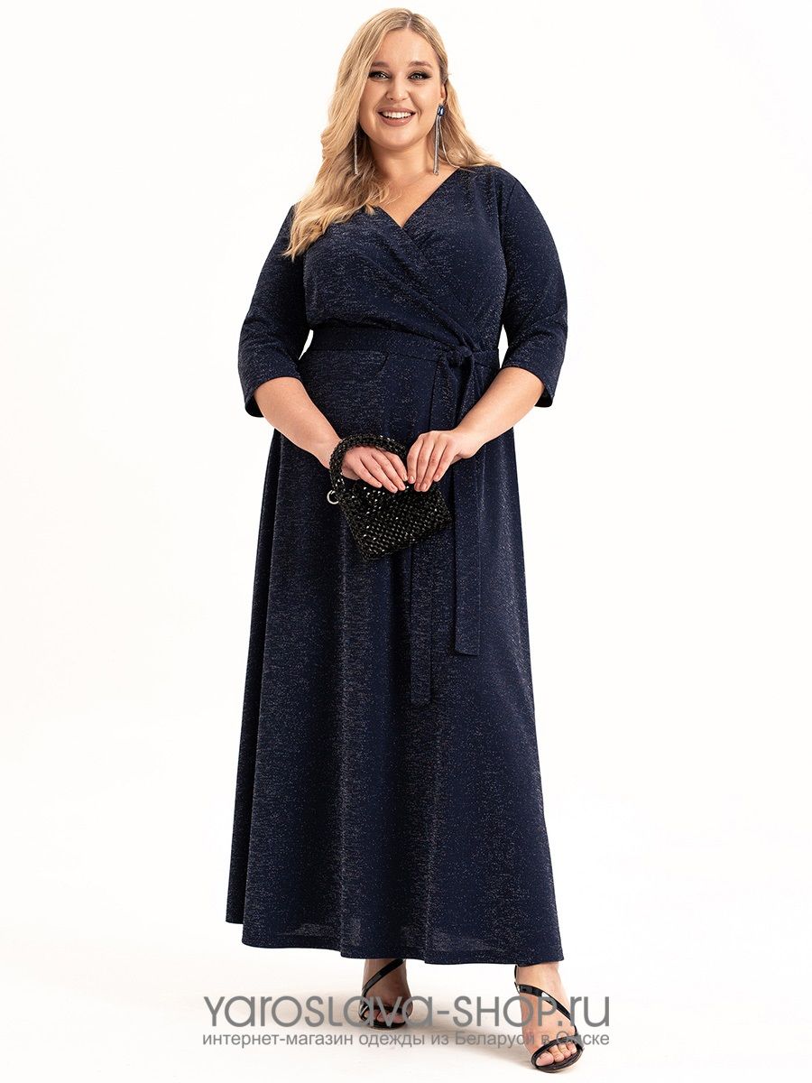 Нарядное платье на запах - это элегантный выбор для любой женщины, подростка или девушки, идеальное сочетание стиля и комфорта. Длинное вечернее платье синего цвета из стрейчевого трикотажного полотна с люрексом. Ткань мягкая, очень приятная к телу. Верхняя часть платья переда и спинки отрезные по линии талии. Лиф переда с эффектным запахом и рельефным бочком. Нижняя часть платья расширена к низу. Рукав втачной, длиной ¾. Платье со съёмным поясом. Съемный пояс и закрытые плечи выгодно подчеркивают женственность фигуры, а рукава длиной три четверти и пикантный V-образный вырез добавляют неповторимости вашему образу. Выполненное из премиальной ткани с блеском, платье представлено в различных размерах. Это универсальное платье подойдет для любого случая: будь то деловая встреча, вечерняя прогулка или особенный праздник. Тренд сезона 2025-2026года. Его можно носить в любое время года, от весны до зимы. Внимание к деталям и трендовый дизайн делают его идеальным выбором для множества мероприятий, включая свадебные фотосессии, ресторанные посиделки или корпоративные вечера. Платье нарядно, кокетливо и подходит как высоким, так и невысоким девушкам. Независимо от вашего стиля или сезона, наше платье будет идеальным выбором.