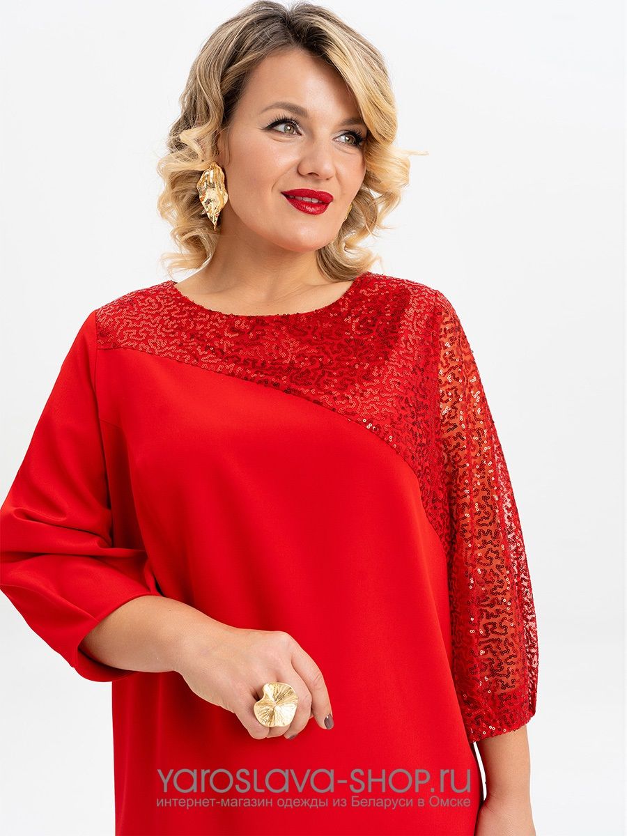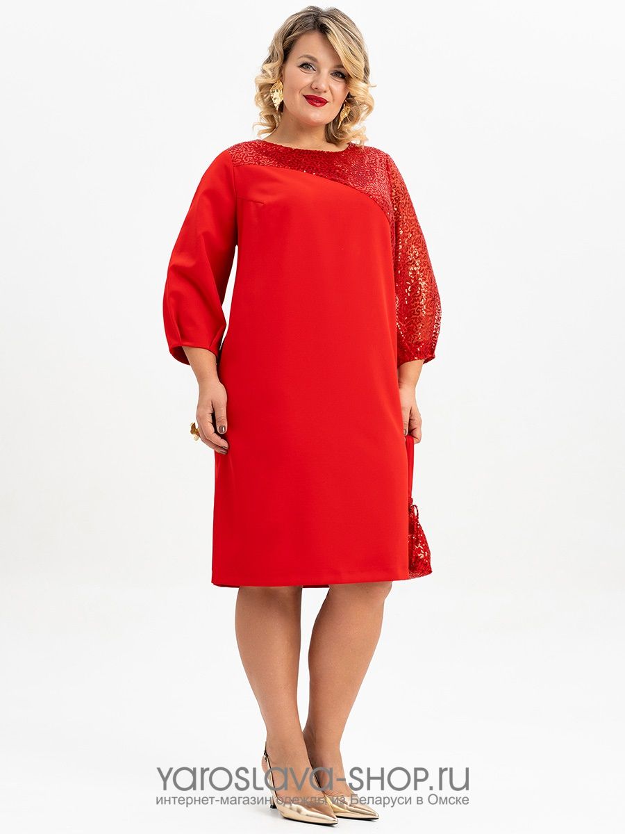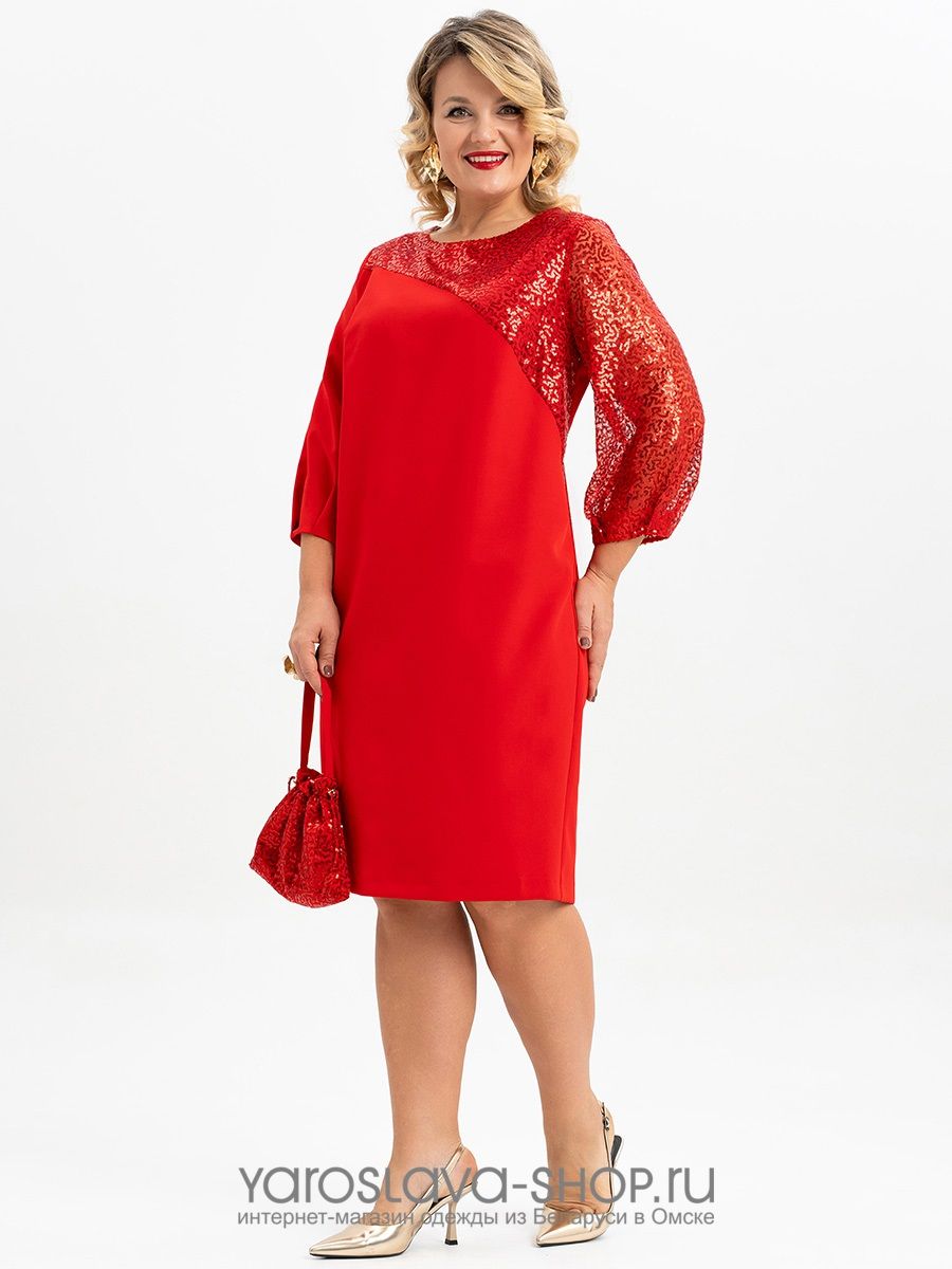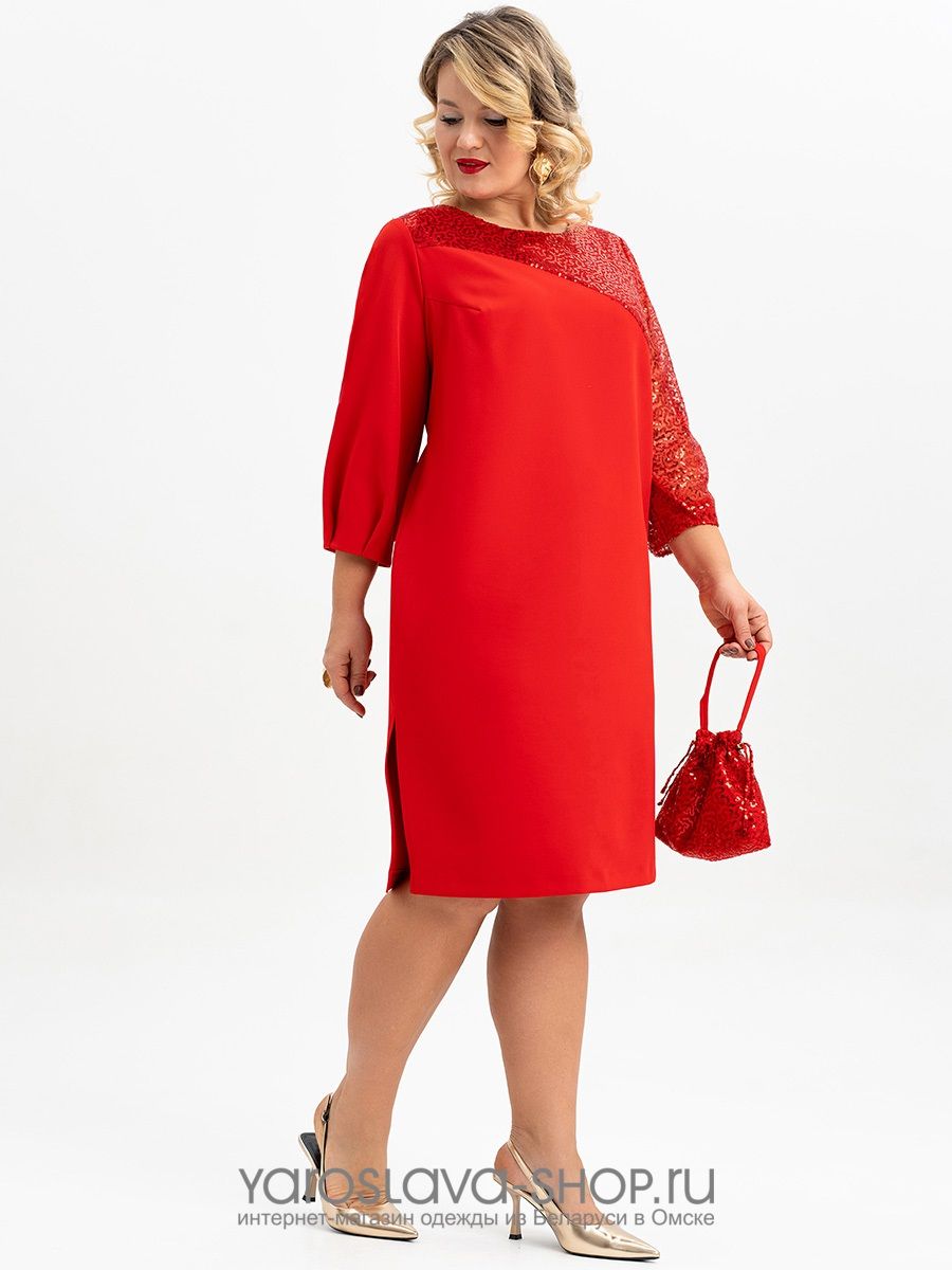 Нарядное платье больших размеров представляет собой идеальный выбор для тех, кто ищет праздничный наряд с уникальным дизайном и комфортом. Шикарное нарядное платье с ассиметричными рукавами станет красивым дополнением элегантного женственного образа. Прямой крой платья- футляр подчеркнёт Вашу фигуру, делая её ещё более привлекательной. Оно выполнена из плательной ткани и сетки расшитой пайетками. Длина изделия доходит до середины голени, приоткрывая линию ног. Благодаря такой особенности дизайна платье будет хорошо смотреться в сочетании с обувью на каблуке и на низком ходу. По переду платья есть нагрудные выточка от проймы, фигурная кокетка, небольшой разрез в боковом шве. Спинка платья со средним швом, в который вставляется молния. Вырез горловины круглый. Воздушный втачной рукав длиной 3/4, по низу которого есть складки. Подойдёт для посещения деловых мероприятий и торжественных событий. В комплекте к платью прилагается нарядная сумочка .Эта маленькая сумочка придаёт завершённость образу. Выполненная в блестящем дизайне, она привлекает внимание и добавляет нотку роскоши. Наступает год Огненной Лошади и платье прямого кроя с сумочкой красного цвета принесет Вам удачу в следующем году!