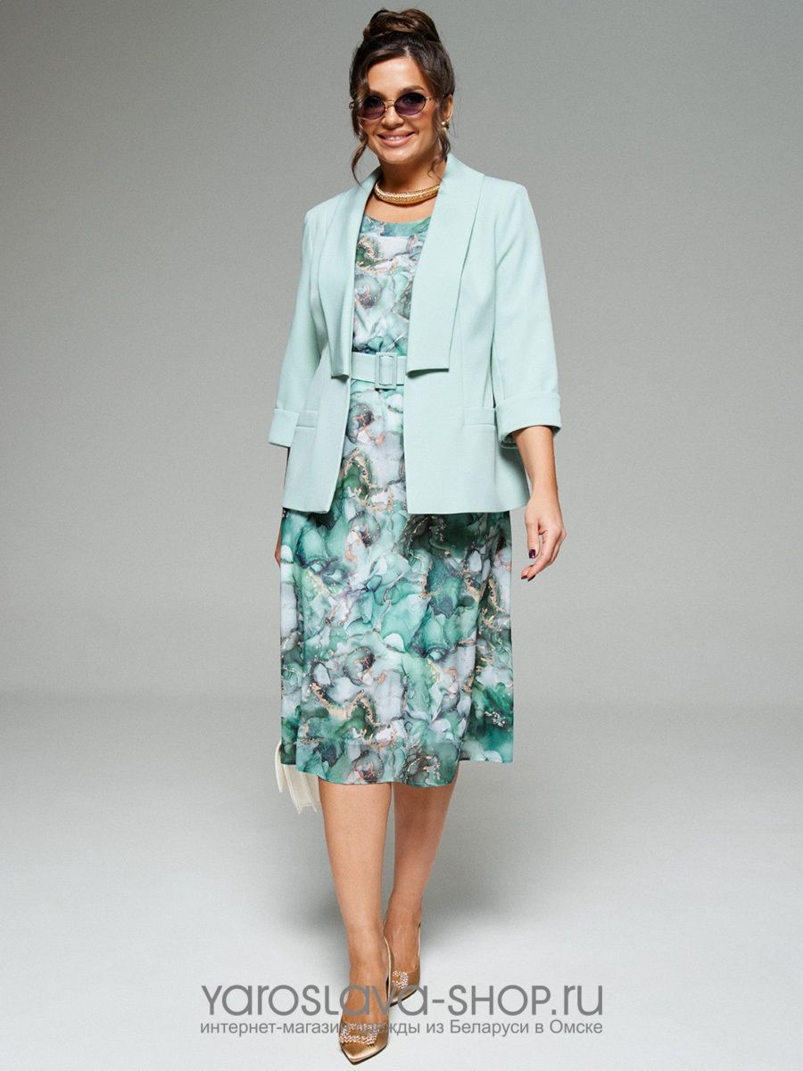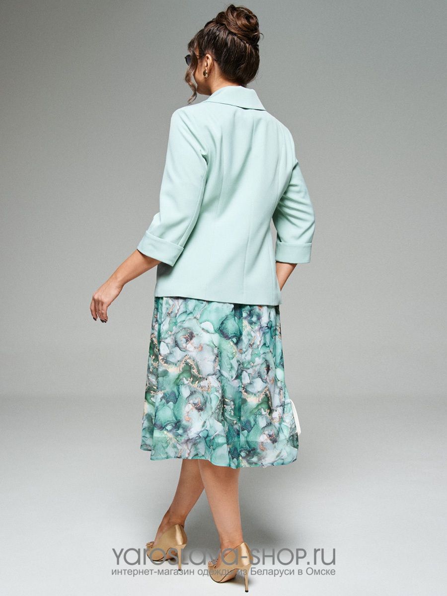 Нарядный женский комплект в бирюзовом цвете, состоящий из жакета и платья