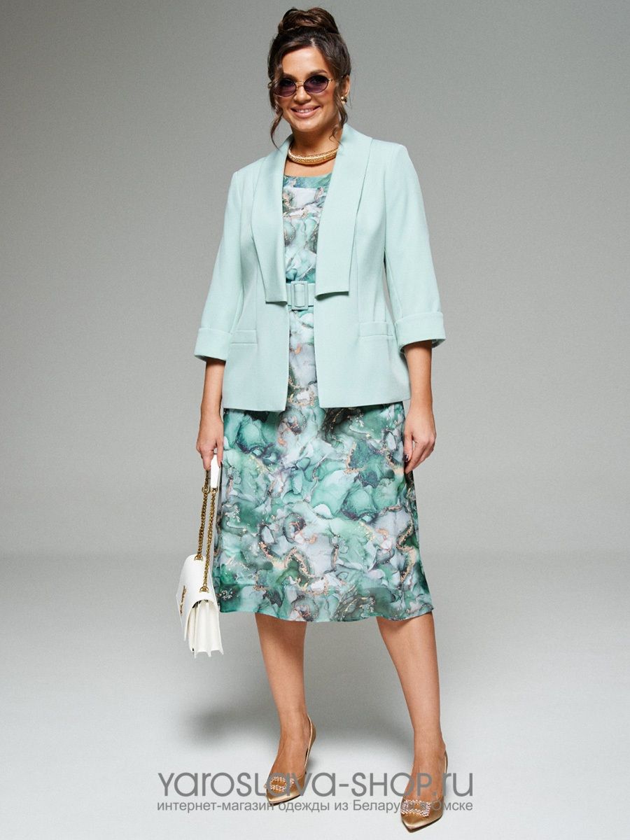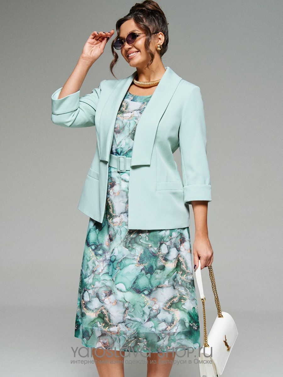 Размер50СезонлетоОттенокбирюзовыйСтильдля торжествУзорабстракцияГорловинакруглый (овальный)ЗастежкапуговицыДлина платья по спинке109 смДлина жакета по спинке61 смДлина рукава жакета25 смРукав3/4ПроизводствоРеспублика Беларусь